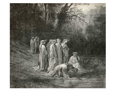 영원하고 변함없는 사랑의 원천에서 두 강줄기가 흘려 나온다. 이쪽, 레테의 강은 사람에게 죄의 기억을 없애주는 힘이 있고, 저쪽. 에우노에의 강은 온갖 선행의 기억을 되살려 준다.