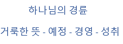 성경에 근거한 하나님의 경륜(經綸)"이란 하나님께서 천지의 모든 일을 당신의 거룩한 뜻으로, 예정하시고, 경영하셔서, 반드시 이루심을 뜻한다 (아래 그림 참조).