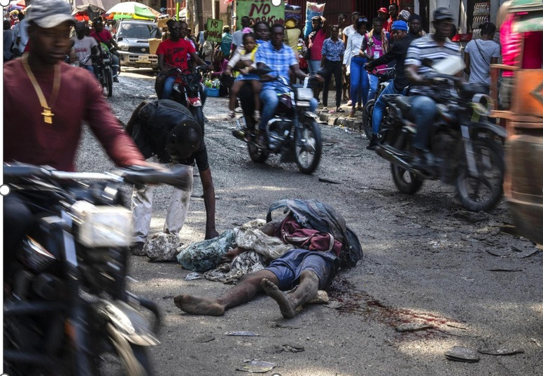 아이티의 정치 불안과 폭력으로 지난해 약 백만명의 국내, 국외 난민이 발생했다. 살인, 약탈, 납치, 성폭력이 만연하지만, 범죄는 처벌받지 않는다. 갱단이 주택가를 습격하고 병원을 점거하기도 한다. 거리에 버려진 시체를 피해 행인과 오토바이들이 그냥 지나쳐간다. 부패한 정치- 타락한 종교- 정신없는 정책- 민생 파탄- 군사 쿠데타- 독재- 폭동- 난민으로 이어지는 악순환을 반복하여, 오늘 한 사회가 붕괴하는 수준에 이르렀다.