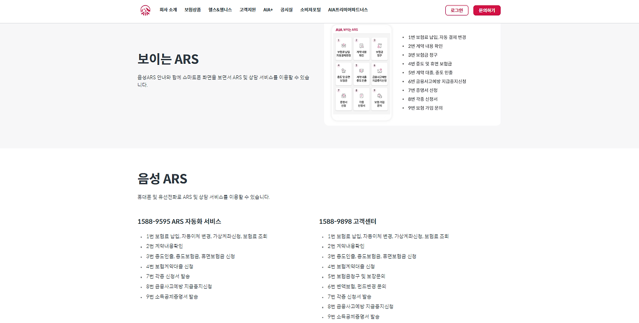 AIA생명 고객센터(1588-9898) 주요 ARS 메뉴는 다음과 같습니다.