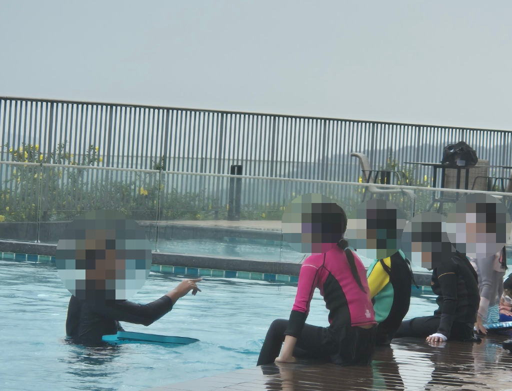 한국에서는 주 1회, 그것도 15명이 함께하는 구립 수영장에서 진도가 좀처럼 나가지 않았는데