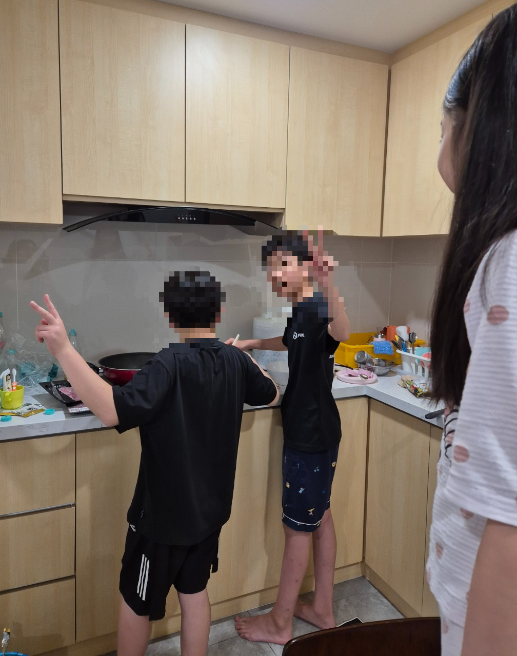 중학생이 되는 오빠들이 능숙하게 고기를 구워주고,