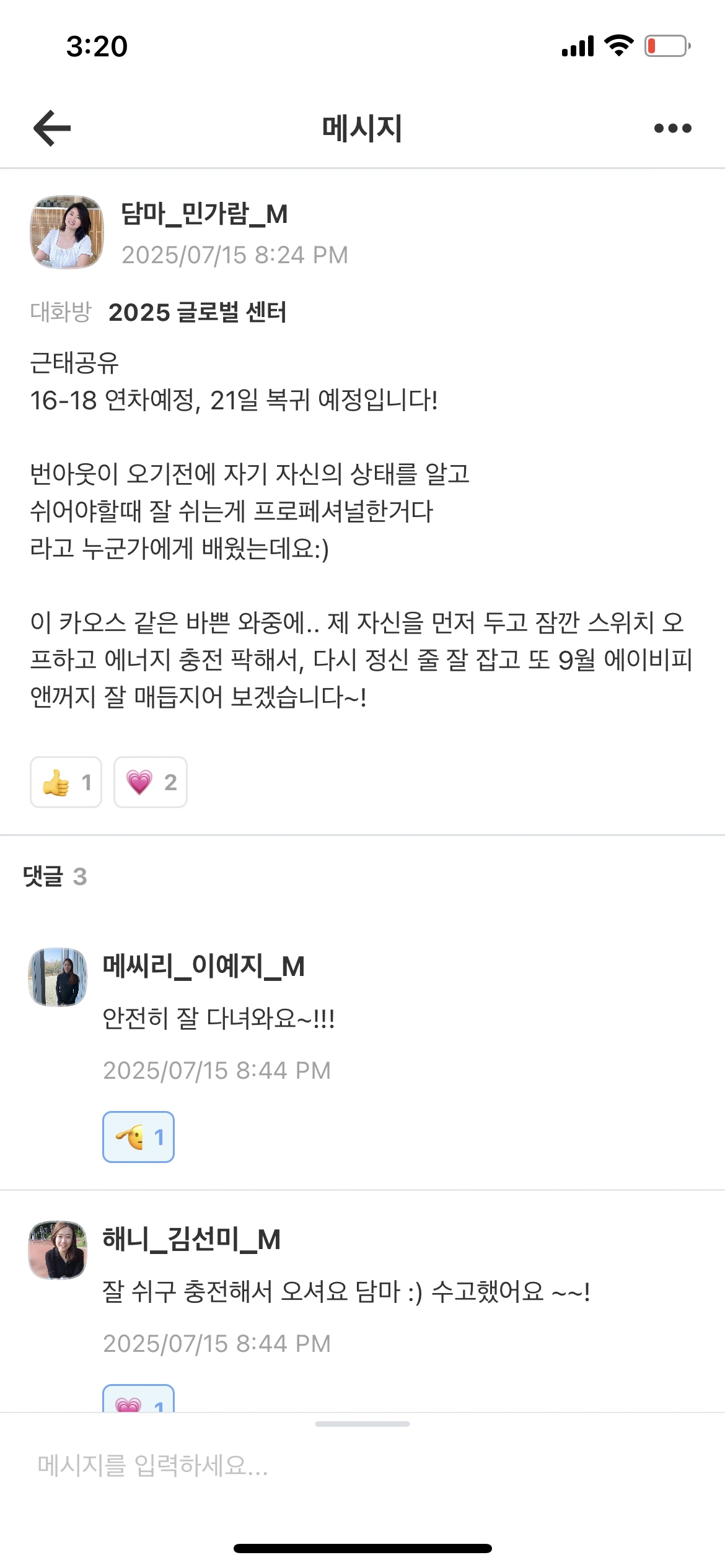 사실 모두가 바쁜 시기라 혼자 오프를 내는 게 조금은 미안했지만, 예전에 누군가 내게 이렇게 말해줬다.