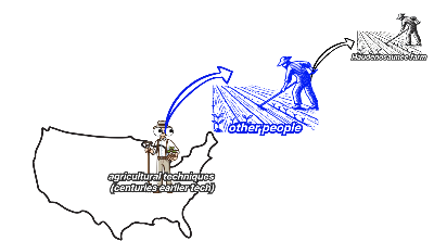 In the early nineteenth century, some Euro-American farmers in the northeastern United States used agricultural techniques developed by the Haudenosaunee (Iroquois) people centuries earlier, but it seems that few of those farmers had actually seen Haudenosaunee farms firsthand. Barring the possibility of several farmers of the same era independently developing techniques that the Haudenosaunee people had already invented, these facts most strongly suggest that _____