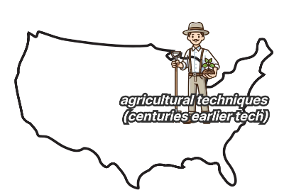 ①In the early nineteenth century, some Euro-American farmers in the northeastern United States used agricultural techniques developed by the Haudenosaunee (Iroquois) people centuries earlier,