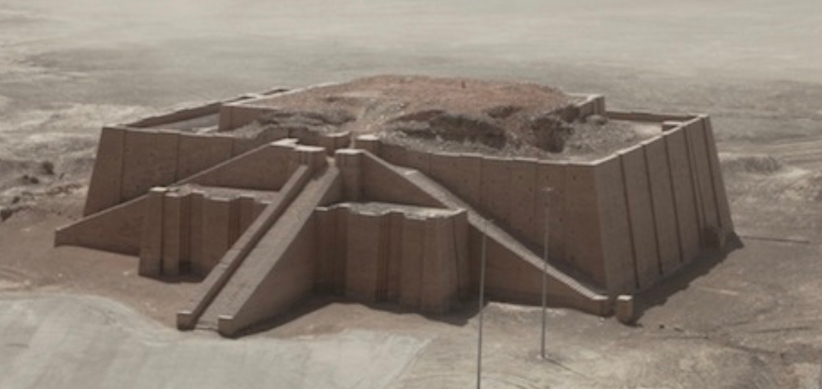 주위보다 18m나 높은 언덕에 벽돌(㼙)로 스투파와 대형 수조를 건설할 수 있었던 인더스강변의 하라파나 모헨조-다로 같은 도시들과 높은 언덕에 돌들로 찻물 제조 시설을 건설했던 테라(Thera) 섬과 크레테섬과는 달리 언덕이 하나도 없는 이집트와 메소포타미아 평원에서는 찻물을 공급하려면 인공적인 고층 건물이 필요했다. 지구라트가 메소포타미아에서 건설된 연유였다. 지구라트 역시 돌이 없는 지역 사정상 벽돌(㼙)로 지어졌고 멀리까지 찻물을 공급하기 위해 필요한 운동에너지를 맞추기 위해 큰 위치에너지가 요구되었고 그것에 따라 높고 웅장한 지구라트가 건설되었다. 성경 속 바벨탑은 하느님처럼 되려는 인간의 욕심 때문에 그렇게 높게 건설된 것이 아니라 차나무가 계속 죽어가는 소빙하기에도 메소포타미아에서 떠나지 않고 어떻게든 계속 살아보려는 인간들의 애달픈 노력 때문에 높아져 간 것이었다. 더 높은 곳에서 만들어 아래로 흘려보내는 찻물은 더 멀리까지 흘러갈 수 있었고 그 찻물이 흘러가는 곳까지는 그래도 사람들이 유랑에 나서지 않고 계속 살 수 있었다. 찻물을 마실 수 있는 새로운 땅을 찾아 유랑하지 않고 부족하지만 그래도 생명을 유지할 수 있는 찻물만 확보할 수만 있다면 자신이 태어나고 조상 대대로 살아온 땅에서 계속 살고 싶어 했던 사람들은 그 혹독하고도 위험한 지구라트 건설 노동을 마다하지 않았다. 계단식으로 건설한 건 지금처럼 크레인 같은 대형동력기계가 없었기 때문이었다. 그러나 그런 그들의 노력에도 기후변화는 메소포타미아에서 차나무를 모두 거두어버렸다. 바빌로니아의 경이(驚異: wonder)로 알려진 공중 정원도 바그다드에 찻물을 공급하기 위해 건설된 눈물겨운 또 다른 모습의 지구라트였다.