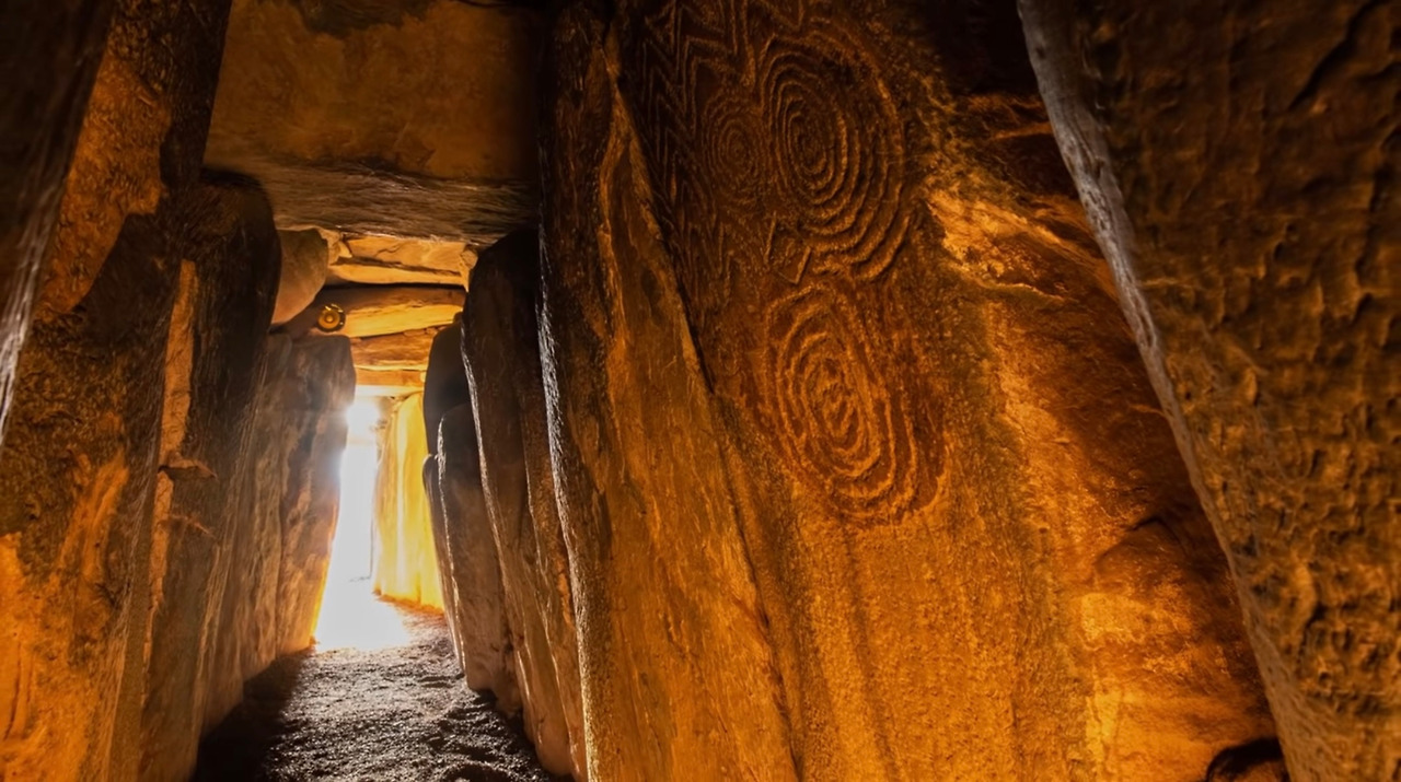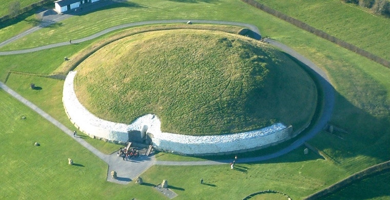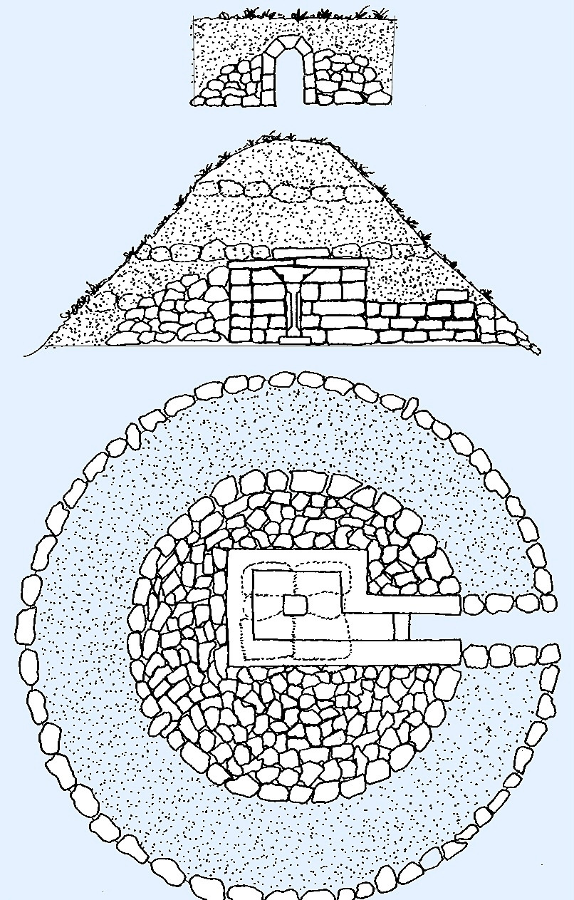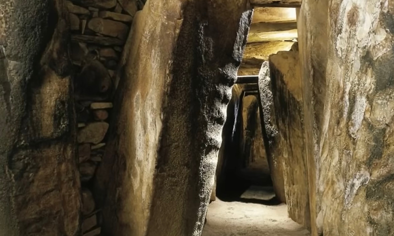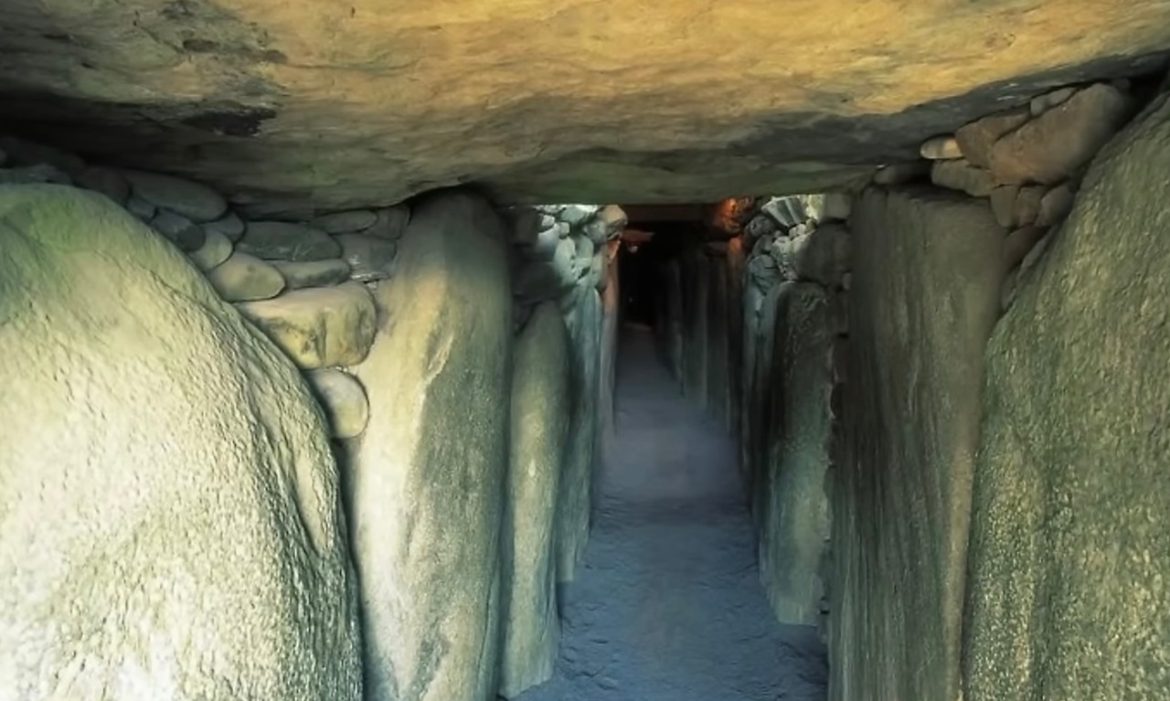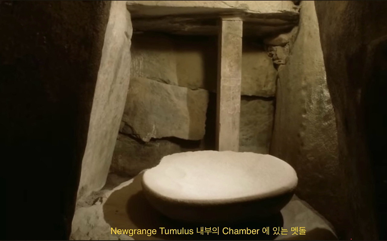 그래서 원래 이름 또한 맷돌 웅덩이(the pool of quernstone)였다. 폴나브론(Poulnabrone)은 영어식 발음을 적은 것인데 아이리쉬(Irish) 철자로 바꿔보면 Poll na Brón 이 된다. 여기서 Brón 은 맷돌(quern)을 뜻하고 poll은 웅덩이, 수조(Pool)를 뜻한다. 따라서 poll na Brón 은 맷돌 수조(pool of the Quernstone)였다. 맷돌에 갈려 착즙(搾汁)되어 나온 찻잎들의 액즙(液汁)이 모이는 수조(水槽) 시설이 있던 곳이었다. 모헨조-다로에서 목욕탕으로 잘못 알려진 대형 수조(水槽) 같은 시설이 있고 스투파 같은 원통형 챔버(chamber)가 있던 곳이었다. 후일 기후변화로 나라의 모든 차나무들이 죽어 사라지자 서지중해 전역에 찻잎을 제공하던 이곳의 찬란한 생명의 역사도 사라지게 되었고 찻잎 교역의 시작점이었던 것 또한 쇠락의 운명을 피할 수는 없었다. 그곳은 이제 맷돌 수조(poll na Brón)가 아니라 슬픔의 구멍(Hole of Sorrows=Poll na mBrón)이라 불리게 되었다. 아일랜드의 수도인 더블린 북쪽으로 50.7km 떨어진 곳에 뉴그란지(Newgrange) 투무루스(Tumulus)가 잘 보존되어 있는데 이곳은 투무리를 포함해 거석문화(Megalithic culture)의 거의 모든 것이 다 찻잎 가공 공장 시설의 하나였다는 걸 증명해 주는 훌륭한 증거다.