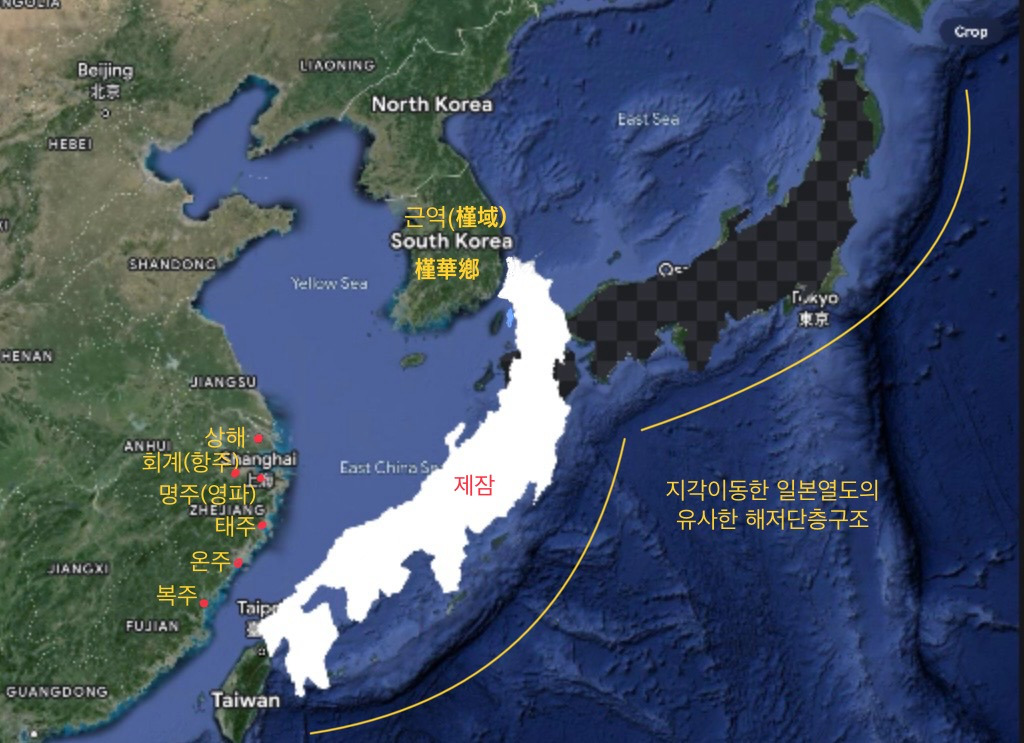 연오랑(延烏郞)과 세오녀(細烏女) 설화로만 알려진 이 사건은 그러나 설화가 아니었다. 전 세계에 찻잎을 제공해 급변하는 기후변화에도 세계 질서를 그래도 유지시켜 주던 부상국에 일어난 상상불허의 지각(地殼) 변동이었다. 부상국(扶桑國)을 구성하고 있던 두 축인 근역(槿域)과 제잠(蹄岑)이 바다를 건너야만 오갈 수 있는 나라로 완전히 둘로 쪼개진 사건이었다. 양산 단층 지역인 포항 호미반도에 붙어있던 지금 아오모리현의 쓰가루(Tsugaru: 津軽) 반도(半島) 서변(西邊)의 쓰가루 국정공원(国定公園)이 있는 돌출 반도가 떨어져 나감으로써 근역과 제잠은 바다를 사이에 둔 완전히 다른 나라가 되어 버린 사건이었다. 호미반도와 쓰가루 돌출반도가 붙어있는 지리적 특징으로 근역(槿域: 槿華鄕)은 부상국에서 찻잎을 생산하는 지역이라기보다는 주로 제잠(蹄岑) 지역에서 생산된 찻잎을 넘겨받아 차(茶)로 만들어 대륙으로 수출하거나 이들을 압착해 찻물을 만들어 지역에 공급(堇)하는 나라였고 실제로 찻잎을 생산해 전 세계에 공급하던 지역은 제잠(蹄岑)이었는데 이런 제잠 지역이 근역과 완전히 떨어져 큰 바다에 둘러싸인 섬이 되어 버린 지각이동이 일어난 것이었다. 기존에도 바다를 통해 찻잎을 제잠으로부터 수입해 왔기에 배(舟)를 가지고 육안으로 보이는 가까운 섬과 섬 사이를 항해하는 데는 익숙한 중국 동해안 연안지역 사람들에게조차도 이제 제잠은 찾을 수 없는 땅이 되어버렸다. 그들 입장에서는 사라져 버린 것이었다.