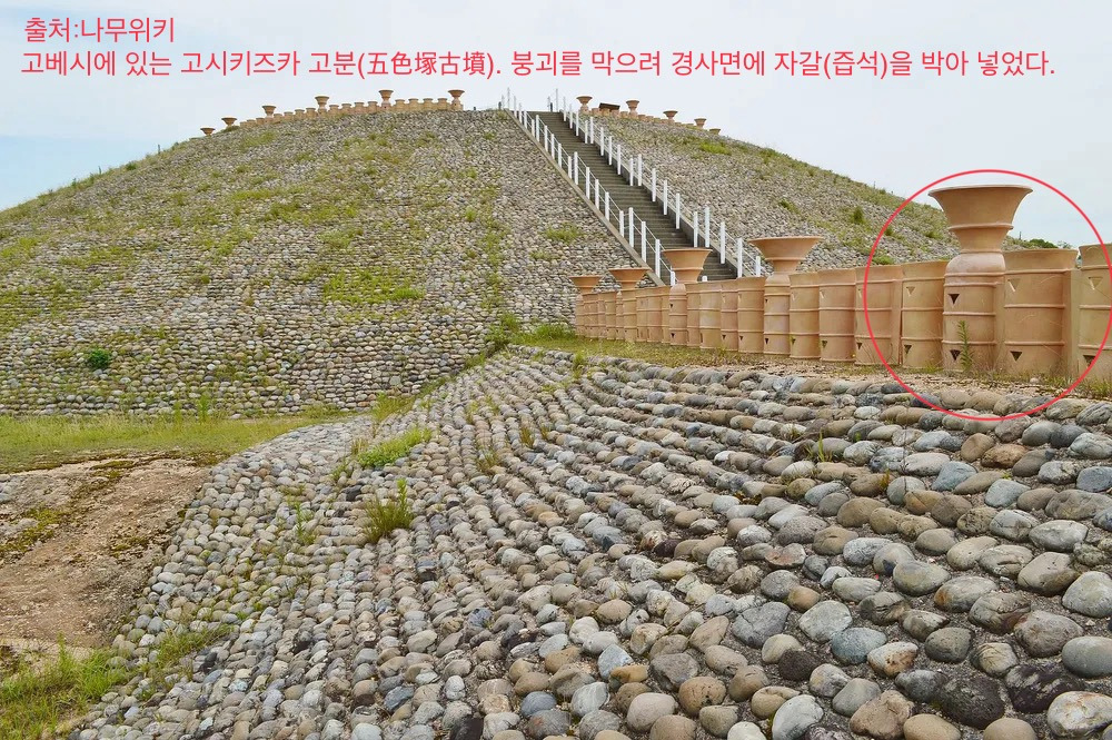 포상팔국(浦上八國)의 난으로 기록된 이 전쟁은 전 세계 차 공급망을 관리해야 하는 월지에게는 신속히 안정시켜야 할 근본적 이익에 대한 위협이었다. 신라에게 뺏겨버린 변진(弁辰:후일의 가야伽倻) 세력의 경제적 지위를 모른 척 방치했다간 가뜩이나 바다를 통해 가까스로 연결되어 있는 야마토와의 무역로가 심각하게 위험해질 수도 있다는 경고가 포상팔국 전쟁이라고 생각한 월지였다. 월지국이 그 대안(對案)으로 내놓은 것이 고배(高杯)라고 기록된 굽다리 접시였다. 탄배의 효과를 극대화해 주는 이 토기는 가야(伽倻)로의 찻잎 제공을 전제로 야마토에게도 제공되었다. 찻잎의 산화(酸化) 문제 때문에 외면당한 가야(伽倻)였기에 야마토에서부터 찻잎의 산화(酸化)를 늦춰주는 가공 공정이 진행된다면 가야의 경쟁력이 제고(提高)될 거라는 판단 때문이었다. 굽다리 접시의 시작은 영산강 유역에서 출토된 유공토기(有孔土器)였다. 유공토기(有孔土器)는 제사를 위해 만들어진 그릇이 아니었다. 유공토기는 이미 개발된 탄배법의 생산성을 제고시키기 위해 발명된 특수 토기였다. 숯 연소성을 대폭 향상시키기 위해 토기 몸체에 일부러 구멍을 내어 숯이 타고 있는 토기 그릇 안으로 공기가 유입되도록 만들어진 것이 유공토기였다. 한 개의 구멍을 가진 유공토기에서 시작된 탄배용 토기는 여러 개의 구멍을 가진 고배로 발전했고 이 고배는 포상팔국 전쟁의 불안을 잠재웠다. 야마토는 허물어진 투무리(Tumuli)를 재건하려는 노력과 함께 찻잎 제공을 약속하고 가야로부터 넘겨받은 굽다리 접시들을 적극 활용해 중국과의 찻잎 거래에서의 열세를 만회했다. 하니와(埴輪)라고 하는 일본 토기가 나타난 연유였다. 탄배(炭焙)를 하기 위해 찻잎들을 담은 배롱(焙籠)을 앉히는 접시 또는 사발 모양을 한 배신부(杯身部)와 탄배에 쓰는 숯 연소(燃燒)의 효율을 높이기 위해 바람이 통과할 수 있는 구멍을 낸 투창이 선명한 대각부(臺脚部)를 가진 하니와(埴輪)의 존재는 전방후원분과 장고분(杖鼓墳)의 선후관계를 분명하게 밝혀주는 또 하나의 증거다.