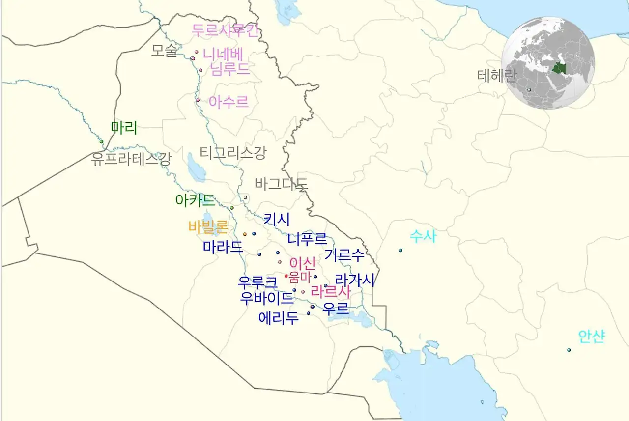 라피스 라줄리(Lapis lazuli). 복잡한 구성성분이지만 핵심은 그 돌이 알루미늄(Al) 성분이 많이 들어가 있는 이산화규소(SiO2), 즉 장석(長石 AlSio2)이라는 것이었다. 청금석(靑金石) 덕분에 카라치와 에리두를 연결하는 아라비아해 바닷길은 쉬이 열렸고 그 바닷길은 무역풍으로 인해 축복받은 교역로가 되었다. 배달족들이 개발하지 않았던 메소포타미아 남부 지역에 에리두를 능가하는 도시들이 우후죽순처럼 건설되었고 결국 그들로 인해 이 지역은 근동(近東) 최고의 번영 지역이 되었다. 수메르인들은 땅을 깊게 파서 수로(水路)를 내봤자 범람지역이기에 쉽게 매몰(埋沒)되는 지역의 한계를 몇 번의 시행착오를 통해 간파했다. 대부분의 땅이 점토로 이루어진 지역의 특성을 이용, 점토를 다지고 다진 후 햇볕에 충분히 말려 돌처럼 단단한 벽돌을 만들고 그 벽돌(磚)들로 바닥을 깔아 도로처럼 길을 내고 그 위에 벽돌(塼)로 벽(甓)을 쌓아 올려 땅을 파지 않고도 수로(水路)를 만드는 공법을 창안해 냈다. 이렇게 만든 수로로 농사를 짓는 땅에 물을 대는 인류사 최초의 관개(灌漑) 농업을 수메르인들은 선보였다. 도르래로 돛(sail)을 조작해 무역풍을 이용해 아라비아해를 항해하는 배들이 인더스 강을 통해 전달된 삼위태백의 찻잎들을 카라치에서 싣고 우르(Ur)로 들어오고 있었다. 모든 사람들이 문명의 혜택으로 행복한 나날들을 보내고 있었다. 수메르(朝鮮)인들이 아카드(Akkad)인이라고 부른 배달족만 빼고.