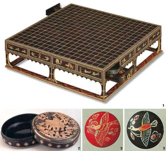 요(堯) 임금이 단주(丹朱)에게 배달국(背達國)에 있는 주사광산(朱砂鑛山) 위치와 차무역로(茶貿易路)의 중간기지(中間基地) 역참(驛站)인 오브(Ovoo, Oboo)와 바얀(Bayan)들의 위치를 표시해 바치라고 명령하면서 준 것은 정방형(正方形)의 격자(格子)들이 새겨진 석판(石板)이었다. 배달국 사람들이 바둑(Badug/Vadug)이라고 부르는 판(版)이었다. 가로 세로 길이가 동일한 정방형(正方形)의 판(板) 위에 한 칸에 18개의 정방형 격자가 들어있는 총 18개의 칸이 그려진, 총 324개의 격자로 이루어진 판(版)이었다. 다른 말로 하면 가로와 세로 각각 19줄의 선이 등간격으로 평행하게 교차하여 361개의 교차점이 그려져 있는 판(版)이었다. 그러나 특이한 것은 지금 우리들이 사용하고 있는 바둑판(碁局)과는 달리 테두리의 줄에는 착점(着點)이 불가능한 즉, 바둑돌을 놓을 수 없게 되어 있는 판(版)이라는 점이었다. 전한(前漢) 경제(景帝: 재위 기원전 157-141)의 능(陵)에서 부장품(副葬品)으로 출토되어 현존하는 가장 오래된 기국(棋局;바둑판)으로 알려진 가로 세로 17줄 바둑판도 테두리 줄에는 바둑돌을 놓을 수 없을 정도로 여유 공간이 전혀 없이 만들어져 있었다. 백제 의자왕(義慈王)이 서기 645년 고구려에게 패한 당나라의 일본 찻잎 금수조치(禁輸措置)를 계속 따라야 한다는 소가노 이루카(蘇我 入鹿)를 암살하고 일본 찻잎의 수출을 재개하겠다고 선언한 일본의 나카토미노 카마타리(中臣 鎌足)에게 백제의 해상무역망(海上貿易網)을 과시해 일본 찻잎을 독점수입하기 위해 보낸 목화자단기국(木畵紫檀碁局)의 테두리도 마찬가지였다. 게다가 목화자단기국에는 우리 민족의 고유 바둑인 순장(循牆) 바둑처럼 17개의 화점(花點)이 표시되어 있었다. (순장바둑에서는 화점이라 하지 않고 순장(順將)이라 부르는 16개의 점과 바둑판 한가운데 천원(天元)이라 부르는 점(點)이 그려져 있다)