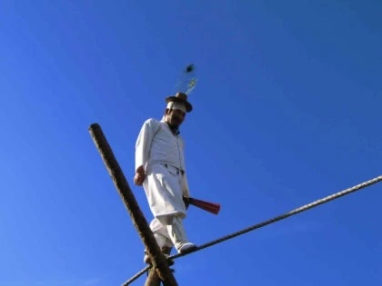 지금 세상 광대[優人]에겐 답색놀이라는 게 있는데, 어떤 이는 이를 이승(履繩)이라고도 한다. 한(漢) 나라 때인 두 밧줄을 양쪽 기둥에 매어 놓고 그 두 광대가 마주 서서 춤을 추면서 밧줄 위로 다니는데, 서로 오가는 길에 얼굴이 마주 닿고 어깨가 서로 갈려도 넘어지지 않았다 하니, 장형(張衡)의 서경부(西京賦)에, 跳丸劒之揮霍 양쪽 손에 공과 칼을 쥐고 휘두르면서 뛰는데 走索上而相逢 밧줄 위로 달리다가 서로 마주 닿는구나 라는 노래가 바로 그것이다. 요즈음 와서는 이런 재주가 더욱 교묘해져서 마주 서서 춤을 출 뿐만 아니라 더러는 능란하게 몸을 번드쳐서 재주를 넘고, 손으로 해금(奚琴)을 퉁기는 등 흔들거리고 기울어지기도 하되 능히 아래로 떨어지지 않으니, 교묘한 재주들이 이와 같다. 혹 그 이유를 물으면, “외줄 타기가 쌍줄 타기보다 쉽다.”라고 대답한다. - 星湖僿說 제5권 만물문(萬物門) 답색 연장(踏索緣橦) 중에서