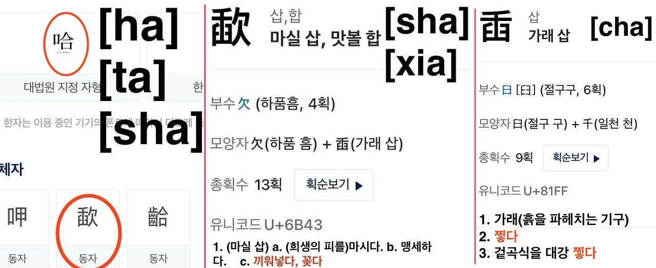이렇게 비밀리에 쏟아부은 엄청난 투자를 물거품으로 만들고 있었던 게 소위 목호(牧胡)들이었다. 말과 양들을 키우는 사람들이라 해서 목호(牧胡)로 알려진 그들의 진짜 정체는 하치(hachi 哈赤)였는데 우리에게는 신안선(新安船)으로 잘 알려진 원(元) 영종(英宗) 연간(재위 1321-1323)에 본격화된 원(元) 나라의 차(茶) 해상무역(海上貿易)을 위해 탐라에 파견된 차(茶) 제조 기술자들이었다. 하치(哈赤)의 치(赤)는 찻잎을 불로 덖는 또는 찌는(蒸) 모습을 상형한 글자이고 하치(哈赤)의 하(哈) 자는 찌어(蒸) 진 찻잎들을 절구에 찧는(臿) 것을 뜻하는 삽(歃) 자를 감추기 위해 중국어로 같은 발음인 하(哈) 자로 바꿔치기된 글자였다. 결국 하치(哈赤)는 말이나 양 같은 동물을 기르는 사람이란 뜻의 목호(牧胡)의 다른 말이 아니라 찻잎을 쪄서(蒸) 건조하고 냉각시킨 후 절구에 찧어(臿) 만드는 말차(末茶)를 제조하는 기술자를 말하는 것이었다. 이런 말차(末茶) 제조 기술자들을 원나라가 탐라에 파견했다는 것은 고려가 일본의 찻잎을 수입해 병차(餠茶)를 만들어 수출했던 왕안석 신법이래 대각국사 의천에 의해 시작됐었던 오랜 전통은 금지되었고 고려는 그저 일본의 찻잎을 탐라에 전달해 주는 역할만을 수행할 수 있었다는 뜻이었다. 개경으로의 환도(還都)를 결정함으로써 강화도를 포기하고 원나라에 굴복한 고려 원종(元宗)에 반대해 진도(珍島)와 탐라(耽羅)로 그 근거지를 옮기며 항쟁했던 삼별초(三別抄)들도 하치(哈赤)처럼 거짓말로 가려워진 말차(末茶) 제조 기술자들이었다. 개경을 버리고 강화도로 천도한 최충헌의 아들 최우(崔瑀)가 횡행하는 도적을 잡기 위해 용사를 선발해 조직한 경찰(警察) 부대라는 야별초(夜別抄)는 그러나 경찰(警察) 조직이 아니었다. 글자 그대로 밤에 특별히 초(抄)하는 사람들이었다. 초(抄)라고 하는 글자는 일창이기(一槍二旗) 모양의 찻잎을 상형한 소(小) 자라는 글자에 찻잎을 가루로 만들어 빼내는 모습을 상형한 삐침 별(丿) 자를 손 수(扌) 자와 합친 글자였다. 즉 야별초(夜別抄)는 찻잎을 찌고 빻아 가루로 만들어 말차(末茶)를 만드는 어려운 작업을 캄캄한 밤에 해내는 특별한 말차(末茶) 제조 기술자들을 말하는 거였다. 말차(末茶)를 만드는 어려운 일을 밤에 할 수밖에 없었던 것은 일본 찻잎을 사용한 고려에서의 말차(末茶) 제조 및 수출을 금지했던 몽골의 감시를 피하기 위해서였다. 차(茶) 시장을 독점하기 위한 육상무역파(실크로드상방)의 최대 목표는 고려와 일본의 차(茶) 연합을 깨트리는 일이었다. 일본에서 생산된 찻잎을 고려가 수입해 말차(末茶)로 만들어 해상무역을 통해 전 세계로 수출하는 것을 막아야만 세계 차(茶) 시장을 독점할 수 있다고 생각하는 실크로드 상방(商幫) 때문이었다. 송(宋) 나라가 실크로드 상방(商幫)에 의해 짓밟힌 이유였다.
