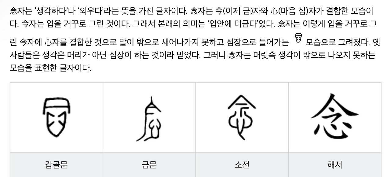 소금 염(鹽) 자는 신하 신(臣) 자와 기슭 엄(厂) 자, 소금 땅로(鹵) 자 그리고 그릇 명(皿) 자로 이루어져 있다. 신하 신(臣) 자는 땅 속에서 광석처럼 존재하던 소금이 녹아 지하에 생긴 균열들을 통해 모세관 현상으로 지상으로 올라오는 모습을 나타내고 있고 소금 땅로(鹵) 자는 그렇게 지하에서 올라온 염수가 지상의 흙을 적셔 만들어진 질퍽한 흙들을 나타내고 있다. 기슭 엄(厂) 자는 염수를 함유한 흙들을 뜨거운 물을 부어 염수만 침출(浸出)시키고 또 그렇게 침출(浸出)된 염수를 끓일 수 있게 지붕과 벽이 있는 시설을 나타내고 있고 그릇 명(皿) 자는 염수에서 물이 모두 기화(氣化)되면 그릇에는 소금 기둥만이 담기게 되는 것을 형상화하고 있다. 이런 소금 염(鹽) 자에는 소금이란 뜻 말고도 산의 이름, 못의 이름, 노래의 이름이란 뜻이 먼저 쓰였는데 그것은 원시 소금을 처음 만들어 낸 곳인 우간다의 키비로가 루왜은조리 산맥에서 흘러나온 나일강 물길이 이어진 앨버타 호수 연안에 있는 마을이기 때문이었다. 그리고 염수가 솟아올라 질퍽거리는 땅은 키비로에서도 사람 하나 겨우 다닐만한 좁고 가파른 길외에는 달리 접근할 방법이 없는 절벽 아래 외진 곳이었다. 그 외진 곳에서 염수를 잔뜩 먹은 진흙을 좁고 가파른 길을 통해 실어 나르기 위해 고안된 것이 지게였다.