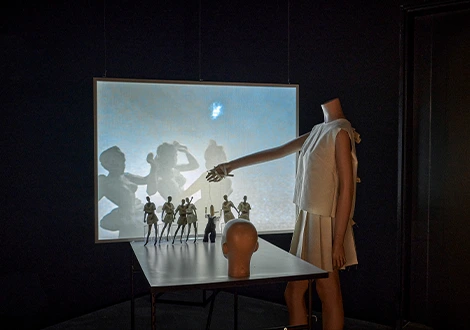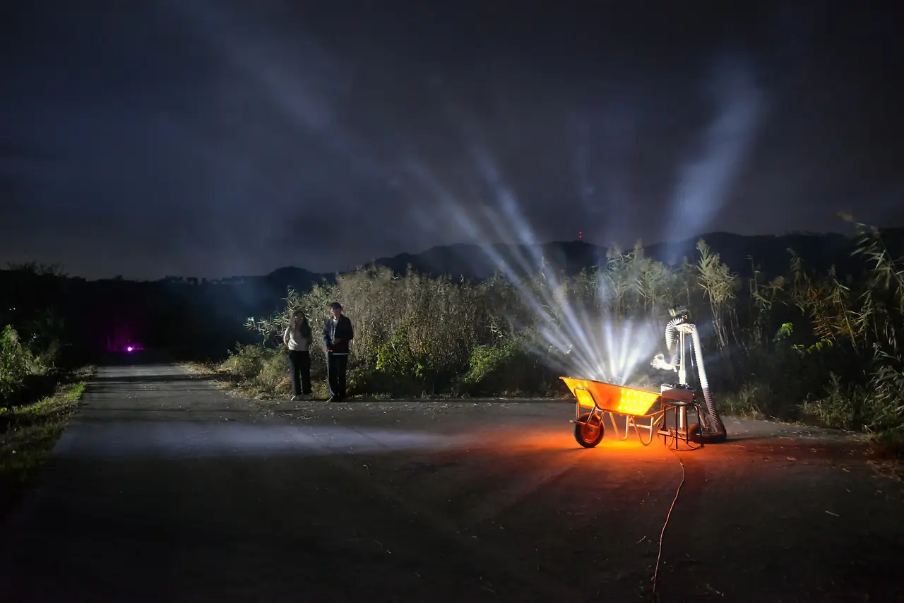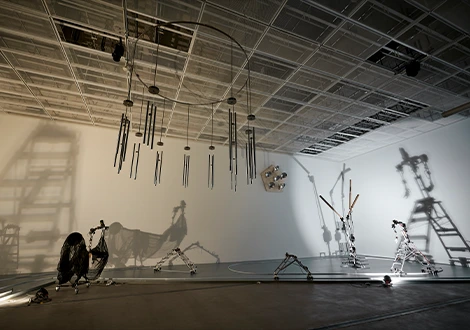여기서 권병준 작가는 신작 '외나무다리를 건너는 로봇 (Robot Crossing a Single Line Bridge)'(2023)과 '오체투지 사다리봇(Ochet uiji Ladderbot)'(2022), '부채춤을 추는 나엘(Nael Performing the Fan Dance)'(2021), '장승(Jangseung) (2023) 등 인간사회의 소수자이자 동반자로서의 ‘로봇’을 매개로 삼아 공연 형태의 작품을 선보였다.