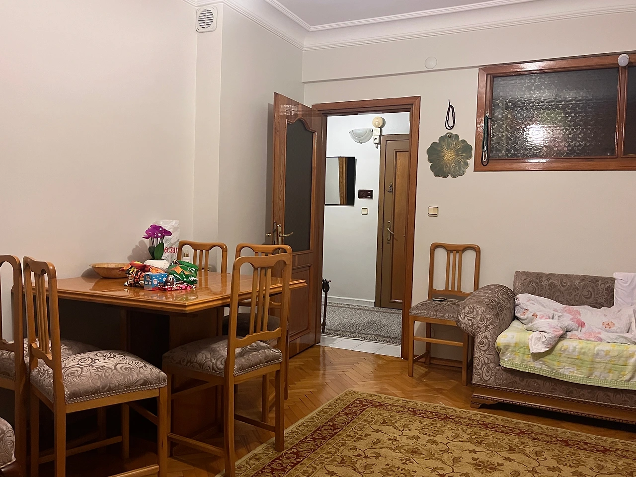 바닥에 깔린 커다란 튀르키예식 카펫,