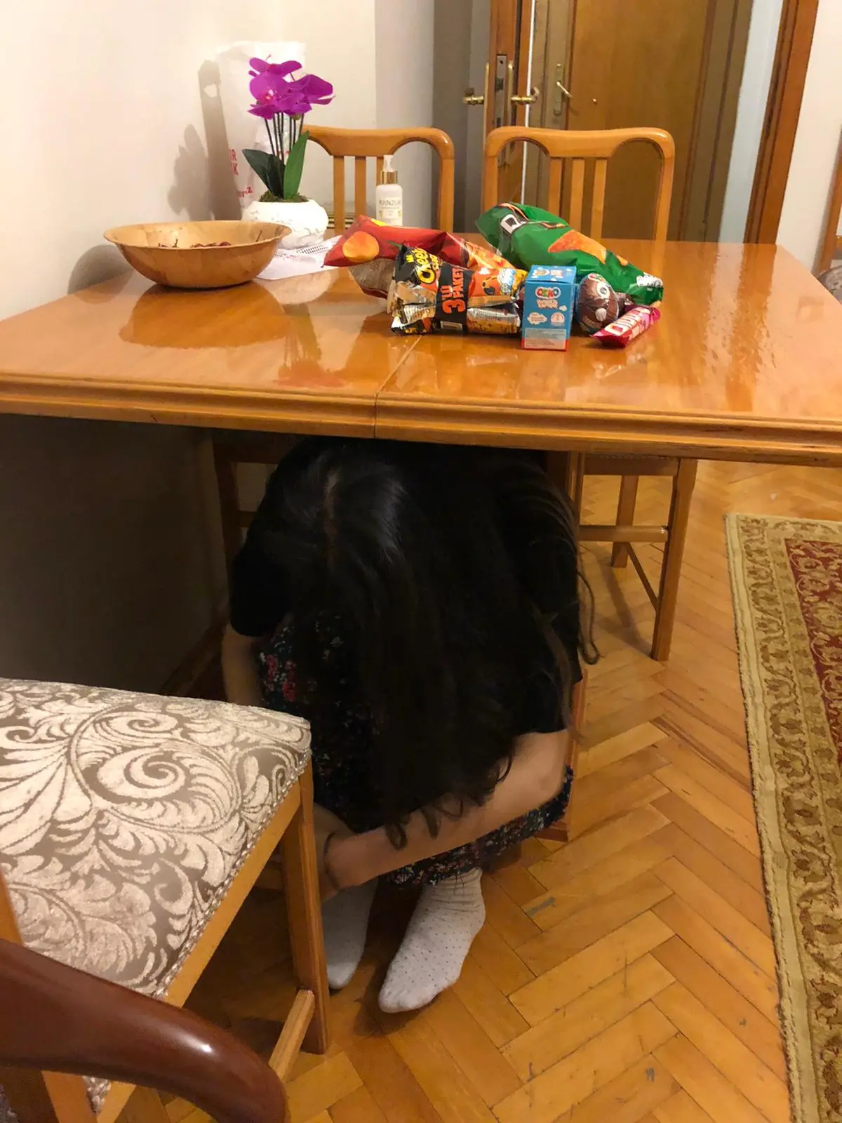배고파지면 거실에 나와 과자파티를 하거나