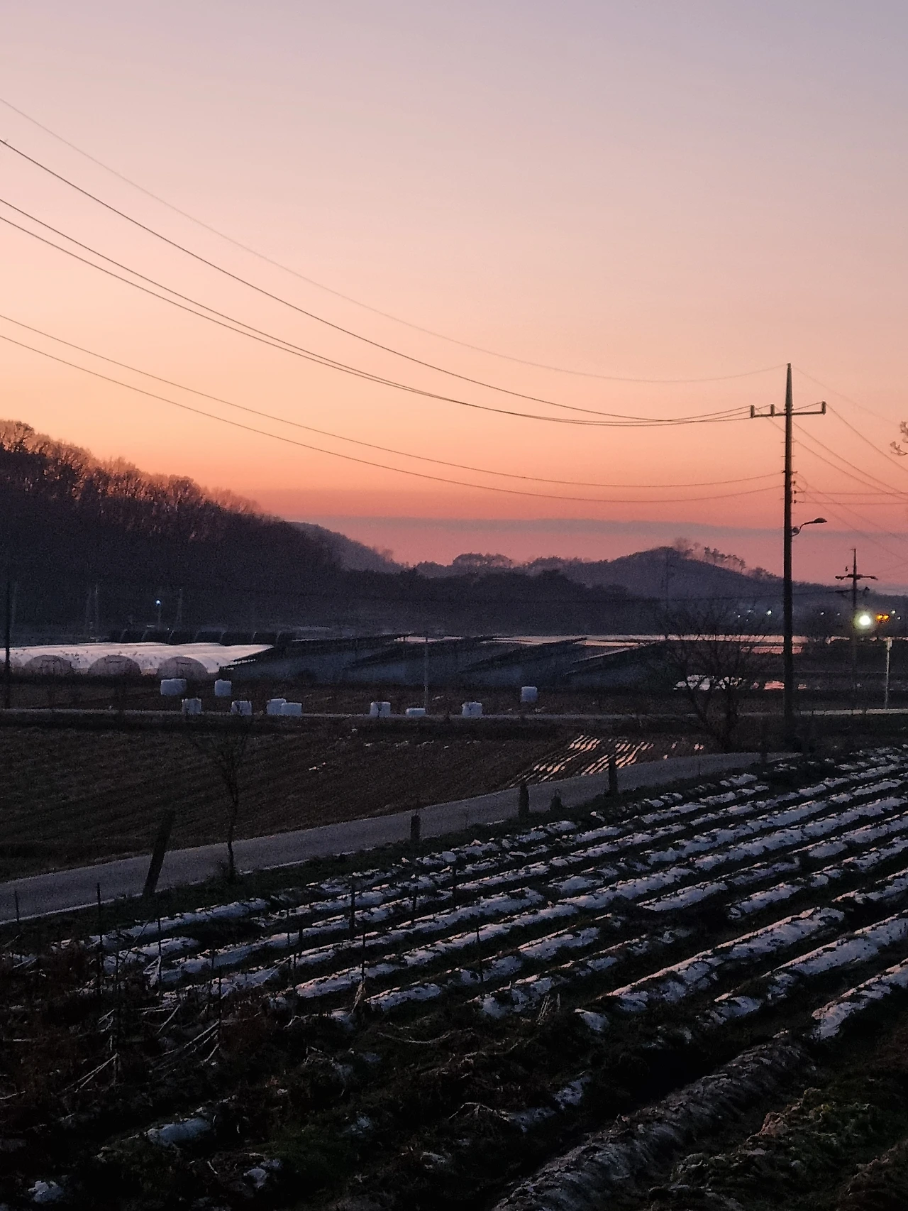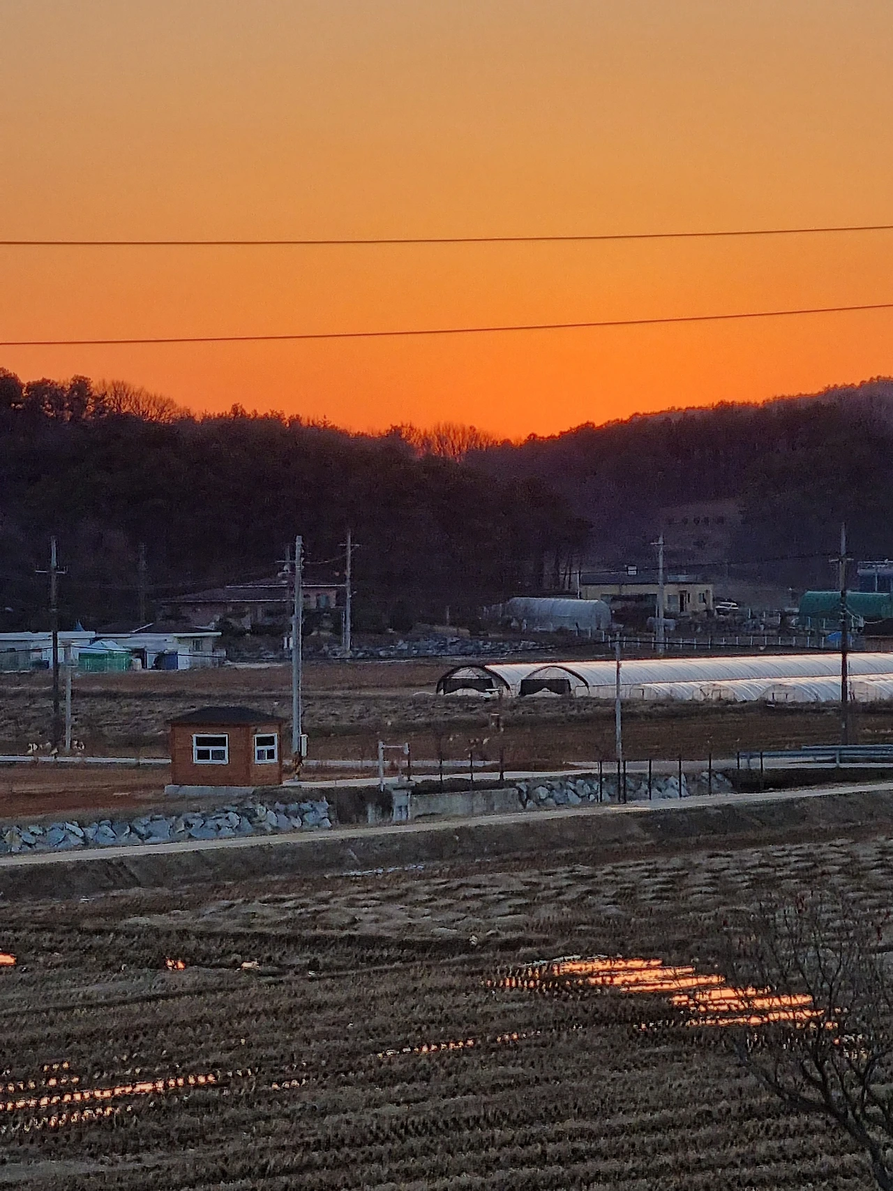 노을이 산속에 넘어가도록