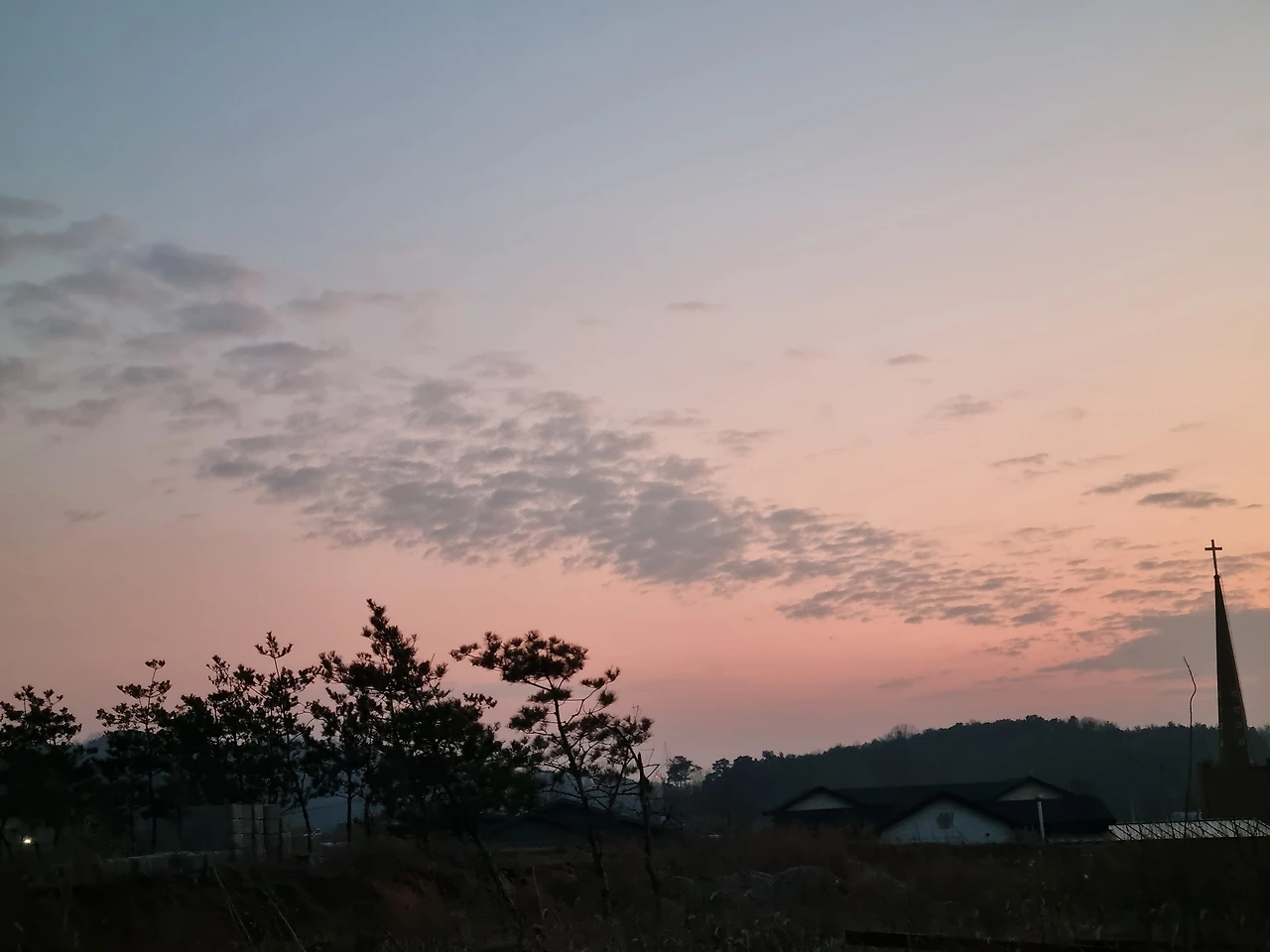서쪽 하늘이 겨울의 빈 들판을 녹여가며