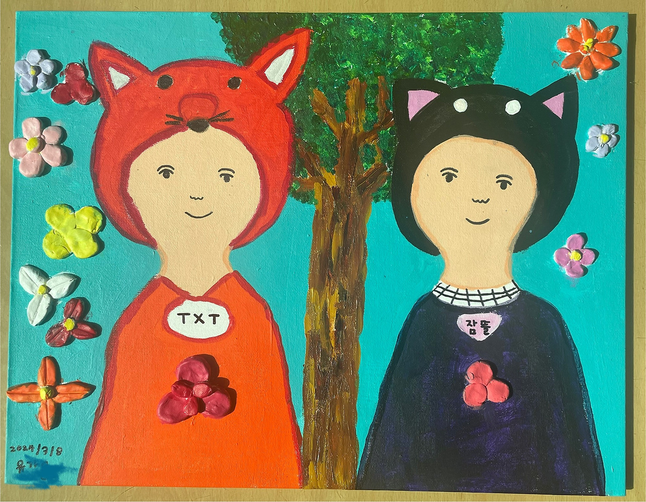 내가 가장 사랑하는 엄마도 표현하고, 조금 큰 친구들은 나와 친구를 표현하고, 좋아하는 백호 판다도 있고, 축구 좋아하는 여자친구는 축구공 잔뜩 그리고, 좋아하는 아이돌 목걸이도 하고.