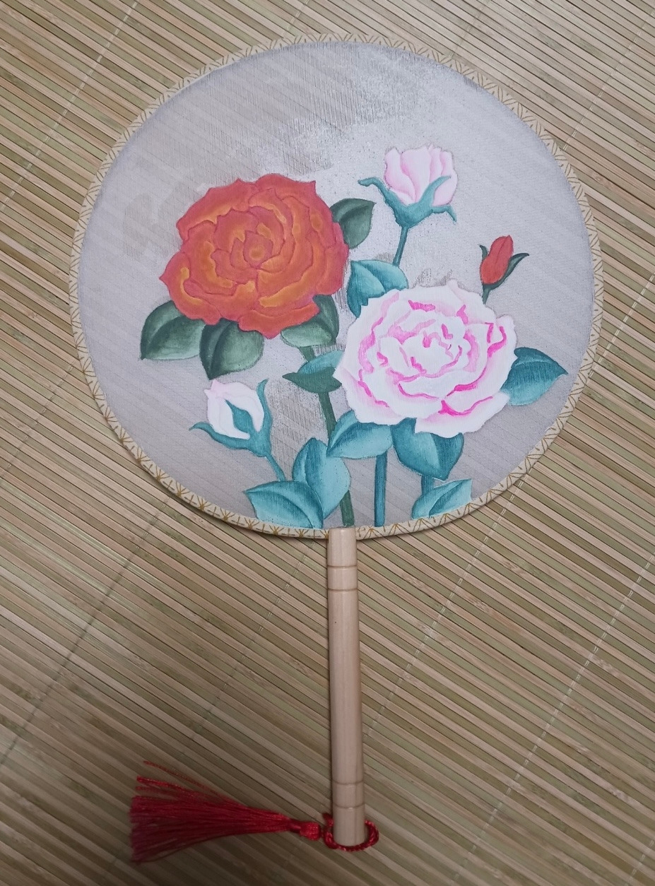 대량 생산된 비단부채는 그 비단과 약간은 다르지만, 다루기 많이 어렵지 않고 색달라서 요즘 많이들 그리는 것 같다.