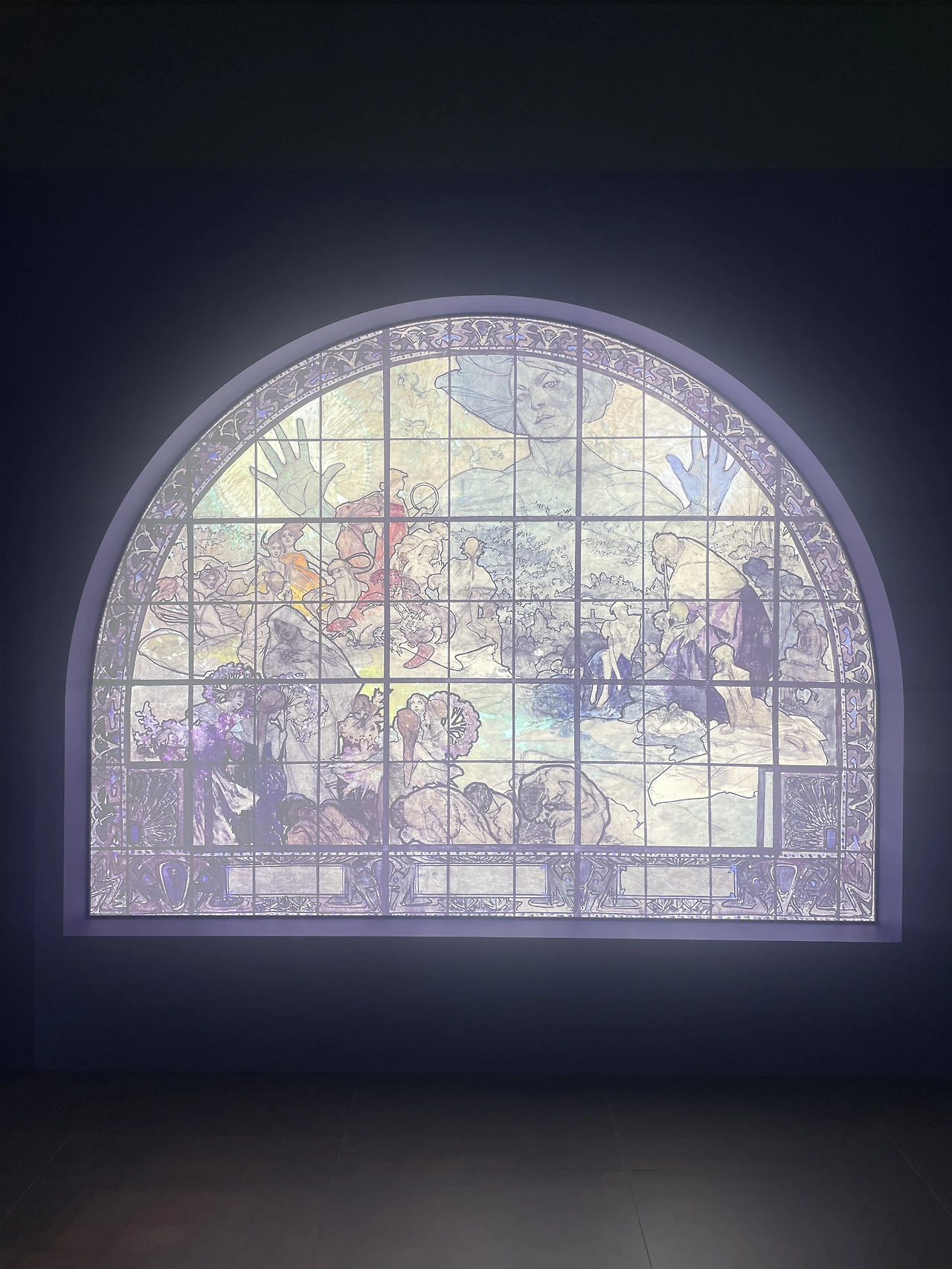 꽤 예전 12년 전쯤 프라하 성 비투스 대성당에서 본 알폰스 무하의 스테인드 글라스는 정말 인상 깊었다. 익숙히 보아 온 스테인드 글라스와 다른 느낌의 마치 회화 같았다. 나중에 알고 보니 일반적인 색유리 조합의 스테인드 글라스 방법이 아닌 유리에 직접 그림을 그리고 가공하는 방식으로 만들어져서 아마 더 회화적으로 보였고 그래서 더욱 인상깊이 남은 거 같다.