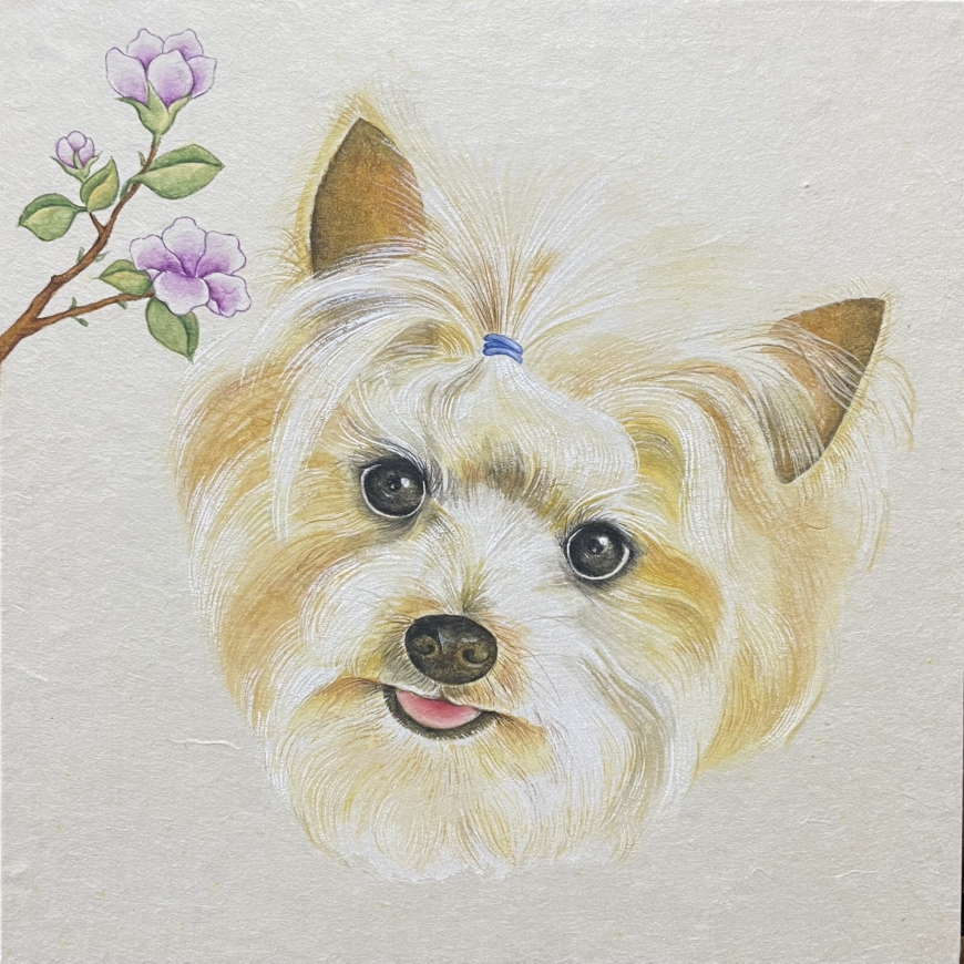 모리는 오일파스텔로 그렸다. 원래 먼저 그린 초롱이처럼 민화기법으로 모리를 그리고 있었는데, 왠지 모리가 좀 통통하게 그려졌다. 내 새끼 귀엽게 안 그렸다고 동생이 삐칠 거 같아 모리 그림은 한 동안 미궁 속을 헤매다가 내 기분이 내키는 날 오일파스텔로 그려졌다.