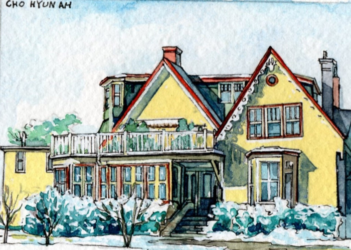 미첼 할머니는 핼리팩스의 퍼블릭 가든 public garden이 내려다 보이는 콘도에 혼자 살고 있었다. 오래전에 할아버지를 떠나보낸 후 넓은 집을 팔고 콘도로 이사 왔다고 했다. 할머니의 집에 들어서자 작은 요크셔테리어 한 마리가 왕왕 짖어 댔다. 화가인 할머니의 집에는 크고 작은 그림 액자들이 가득 걸려있었다. 현관부터 복도, 거실, 각 방마다 할머니의 그림은 물론 다른 작가의 그림들이 마치 미술관처럼 빼곡하게 걸려 있었다. 바닥부터 천장까지 그림이나 사진 액자로 가득했다. 거실 한가운데에는 그랜드 피아노가 놓여있었고 고풍스러운 소파와 테이블이 벽을 따라 길게 놓여있었다.