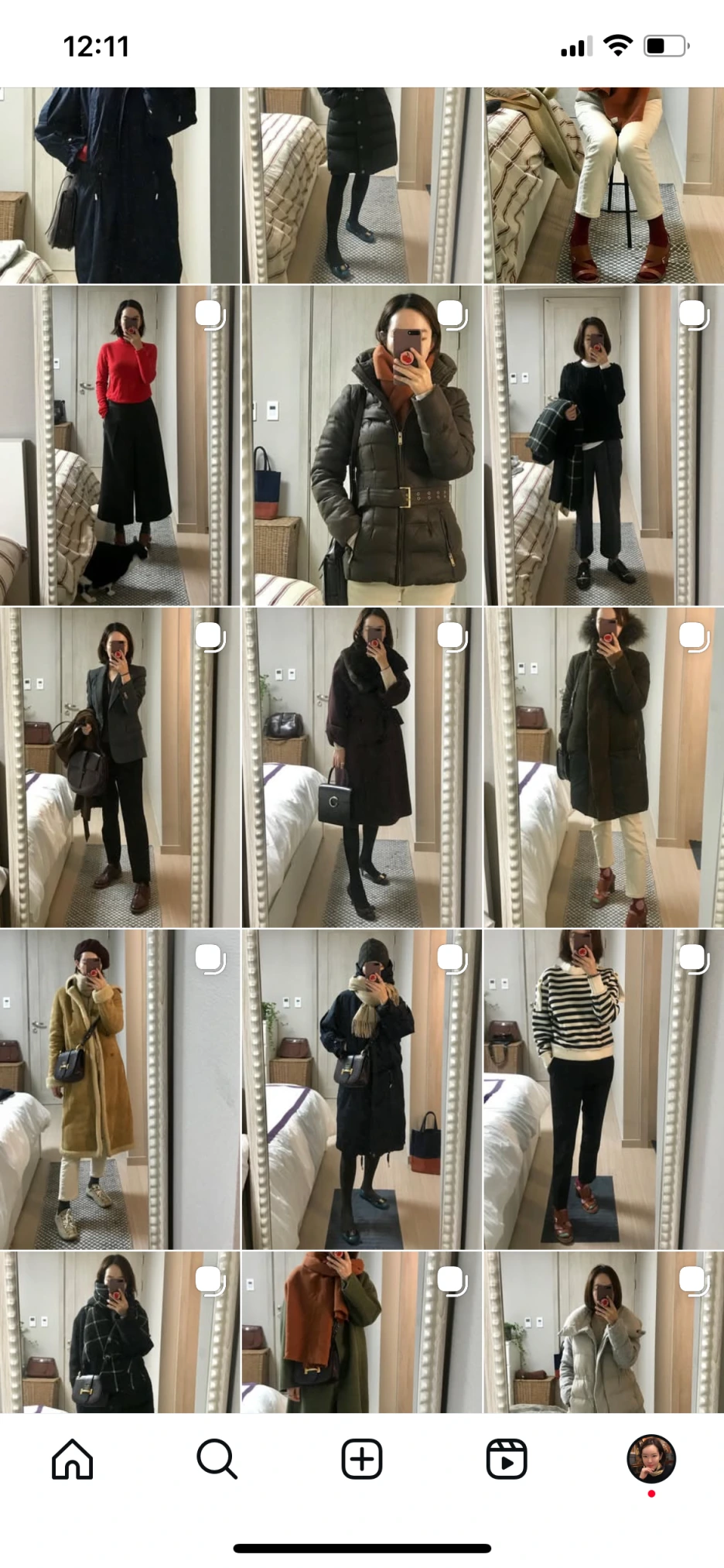 그때 매일 아침 출근룩, OOTD 사진을 찍었다.
