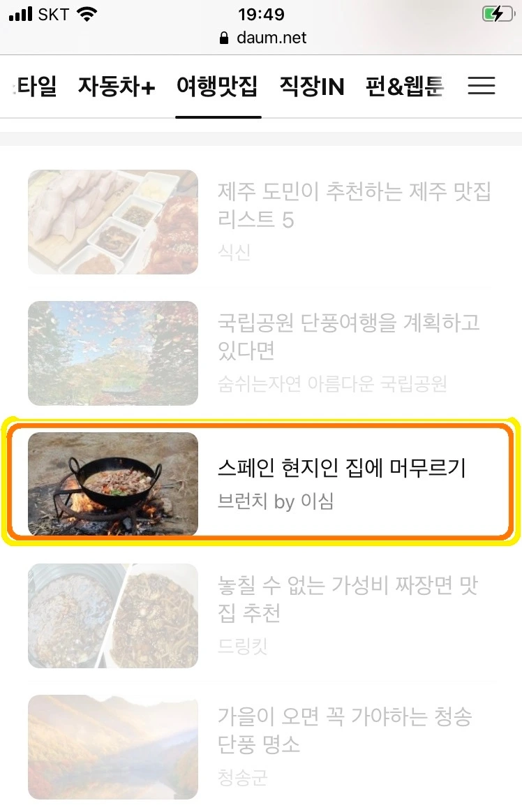 그런데 그 일곱 개의 글 중 하나가 Daum 메인화면에 떡 하니 자리 잡고 있었다.
