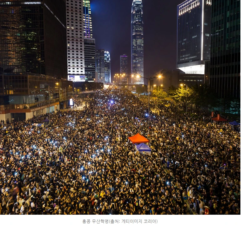 20세기 후반 중국 반환일자가 다가오자 홍콩 시민들은 자유를 잃고 중국의 폐쇄적인 사회주의에 속해질지 모른다는 불안감에 많은 사람들이 싱가포르, 캐나다 등으로 국적을 바꾸었다. 실제로 많은 예술가, 배우들도 2중 국적을 가지고 있다. 이후 중국 정부의 약속 미이행으로 시민들은 2014년 9월 대대적인 시위를 벌였고, 시위 진압대의 최루탄을 우산으로 막는 시민들의 장면이 세계 언론에 보도대면서 '우산혁명'으로 불리게 되었다. 79일간 지속된 우산혁명은 선거제 개헌이라는 큰 뜻을 이루지는 못했지만, 세계인들의 관심을 이끌어 냈다는 점에서 의미가 깊다.
