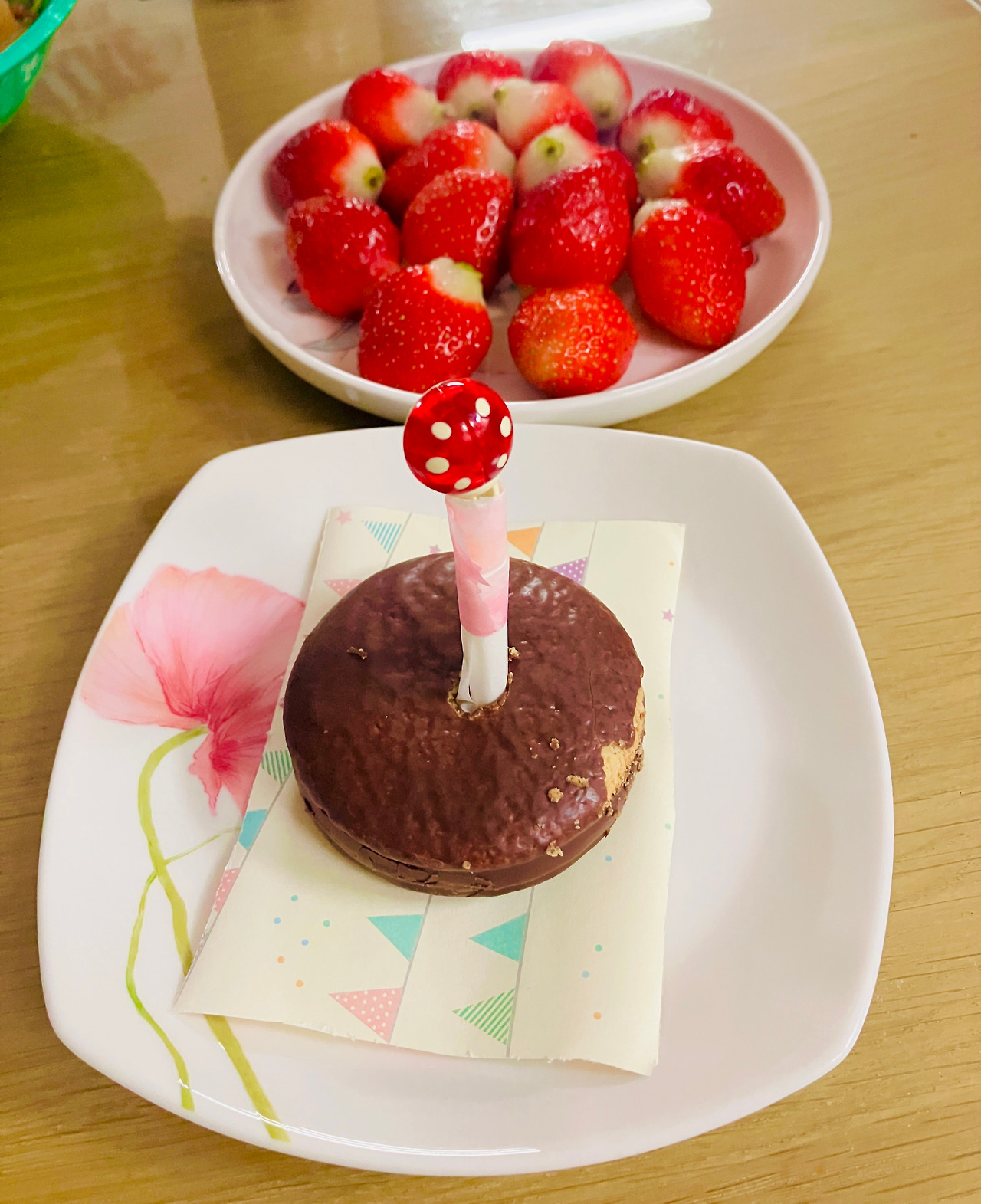 내가 요리할 때 옆에서 자꾸 얼쩡거려서 뭐라고 했었는데 주방에 있던 종이포일은 어느새 초가 되어 초코파이에 꽂혀 있다.