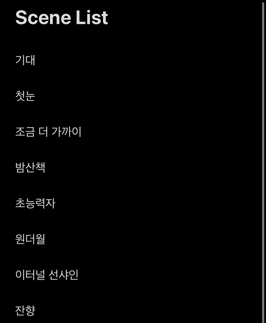 공연의 씬리스트다 각 파트별로 할 이야기들