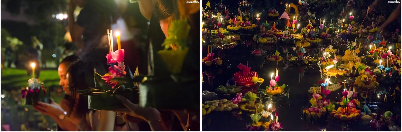 태국 최대 축제 중의 하나인 ’러이 끄라통 축제‘는 11월 5일과 6일 양일간 진행되었다. 치앙마이에서는 이 기간에 풍등을 띄우는 란나 전통의 이뺑 축제도 함께 열린다. 러이(Loy)는 ‘띄우다’, ‘떠나보내다’라는 의미이고, 끄라통(Krathong)은 바나나 잎 등으로 만든 ’ 연꽃 모양의 작은 배‘ 를 뜻한다.