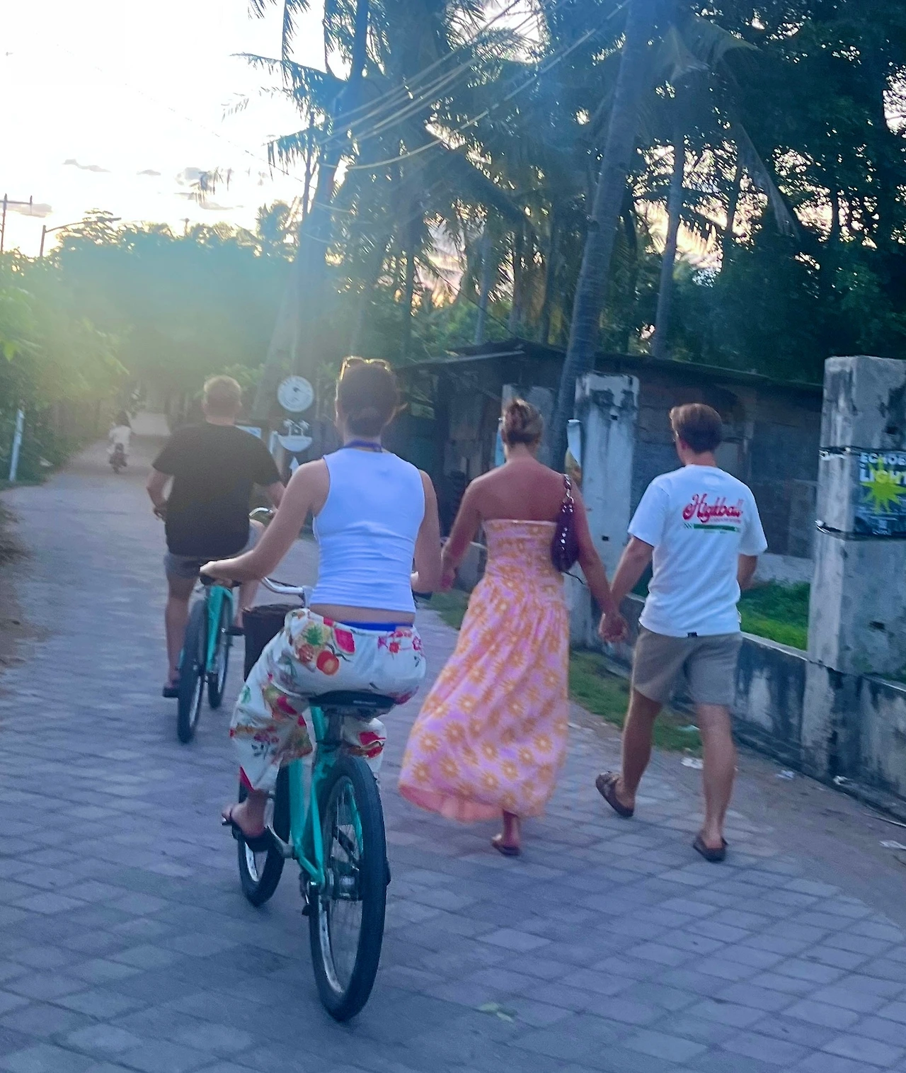 길리의 파란 하늘과 구름, 에메랄드 빛 바다와 바다거북의 만남은 자연이 준 선물 같은 순간이었다. 느림의 미학이 있는 이 섬에서 울퉁불퉁하고 질퍽한 길바닥조차도 순수한 매력으로 다가왔다. 낮에는 뜨거운 태양 아래 자유를 만끽하는 비키니 차림의 여행객들이 활기를 더했고, 해 질 녘이면 화려한 드레스로 갈아입고 석양을 향해 걷는 이들의 모습으로 가득 찼다. 이 낯선 대조는 동남아의 작은 섬 길리를 마치 유럽의 어느 고급 휴양지처럼 느껴지게 했다.