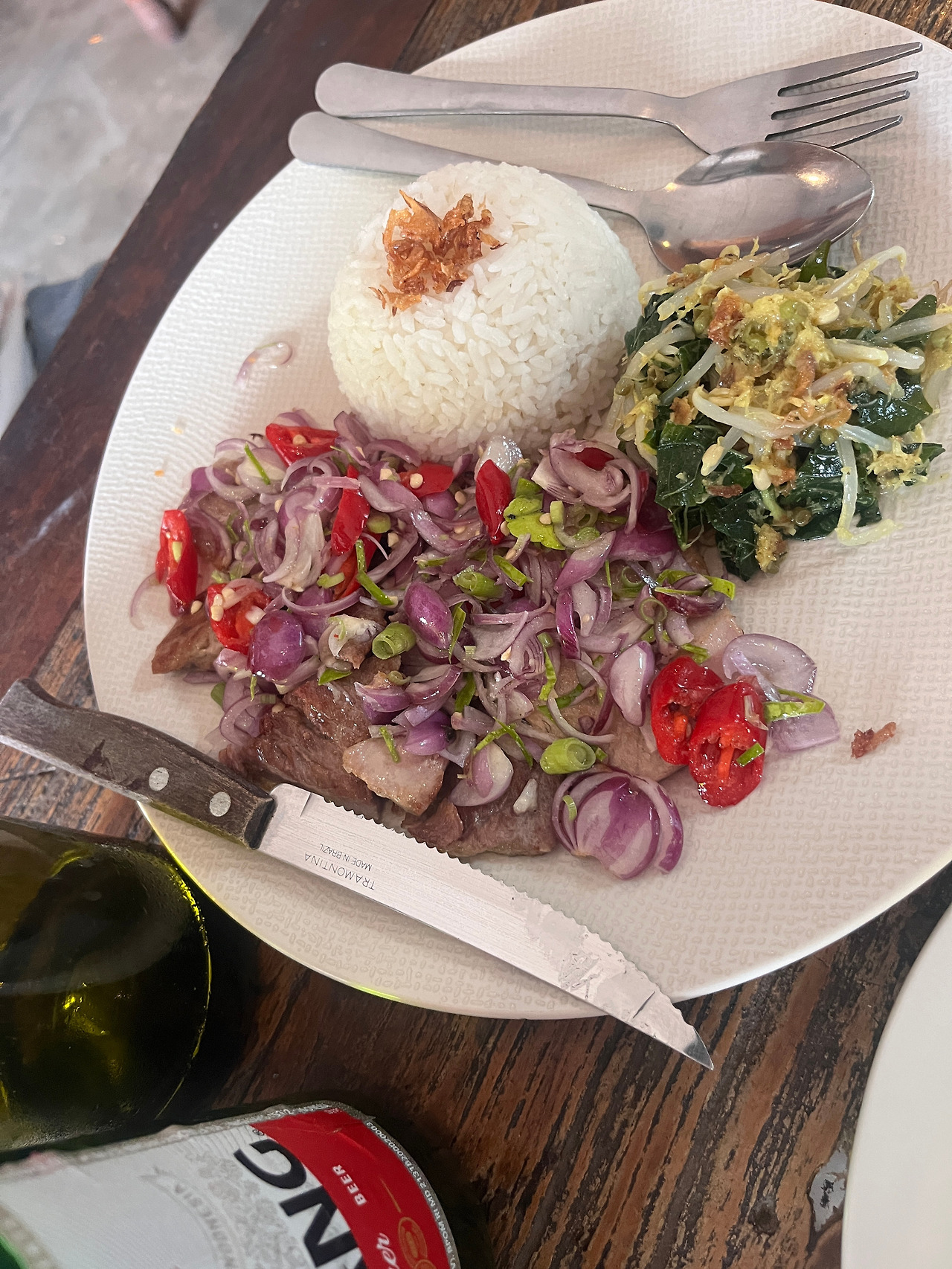 첫날밤, 숙소 근처에서 우연히 발견한 'Sinduk 와룽'에서의 식사는 완벽했다. 구글 평점이 높아 들어간 그곳은 테이블 6개가 전부인 작고 소박한 식당. 그곳에서 참치 삼발 마따(Tuna sambal matah)와 나시깜뿌르를 주문했는데, 한 입 먹는 순간 감탄이 절로 나왔다. 참치가 '이렇게 맛있는 거야?' 그날 이후로 나는 우붓에 머무는 동안 그 식당을 네 번이나 찾았다. 모든 메뉴가 완벽했던 건 아니지만 대체로 만족스러웠고, 멀리 나가기 귀찮을 때 언제든 편하게 들를 수 있는 나만의 든든한 단골집이 되었다.