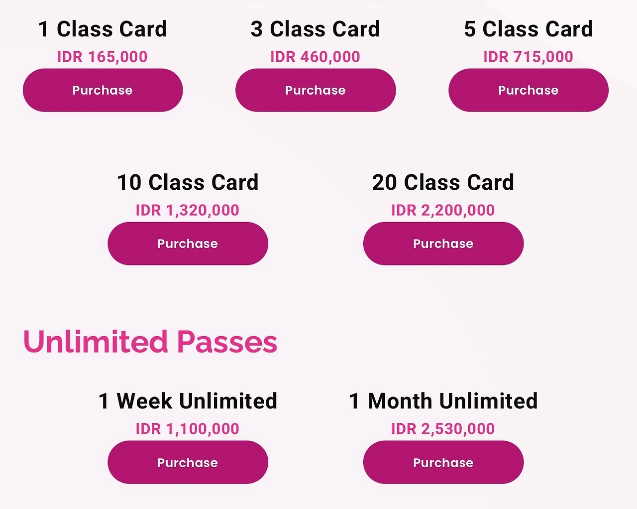 요가원에 도착해 보니 생각보다 훨씬 다양한 클래스가 준비되어 있었다. 클래스의 구성과 비용은 이랬다.