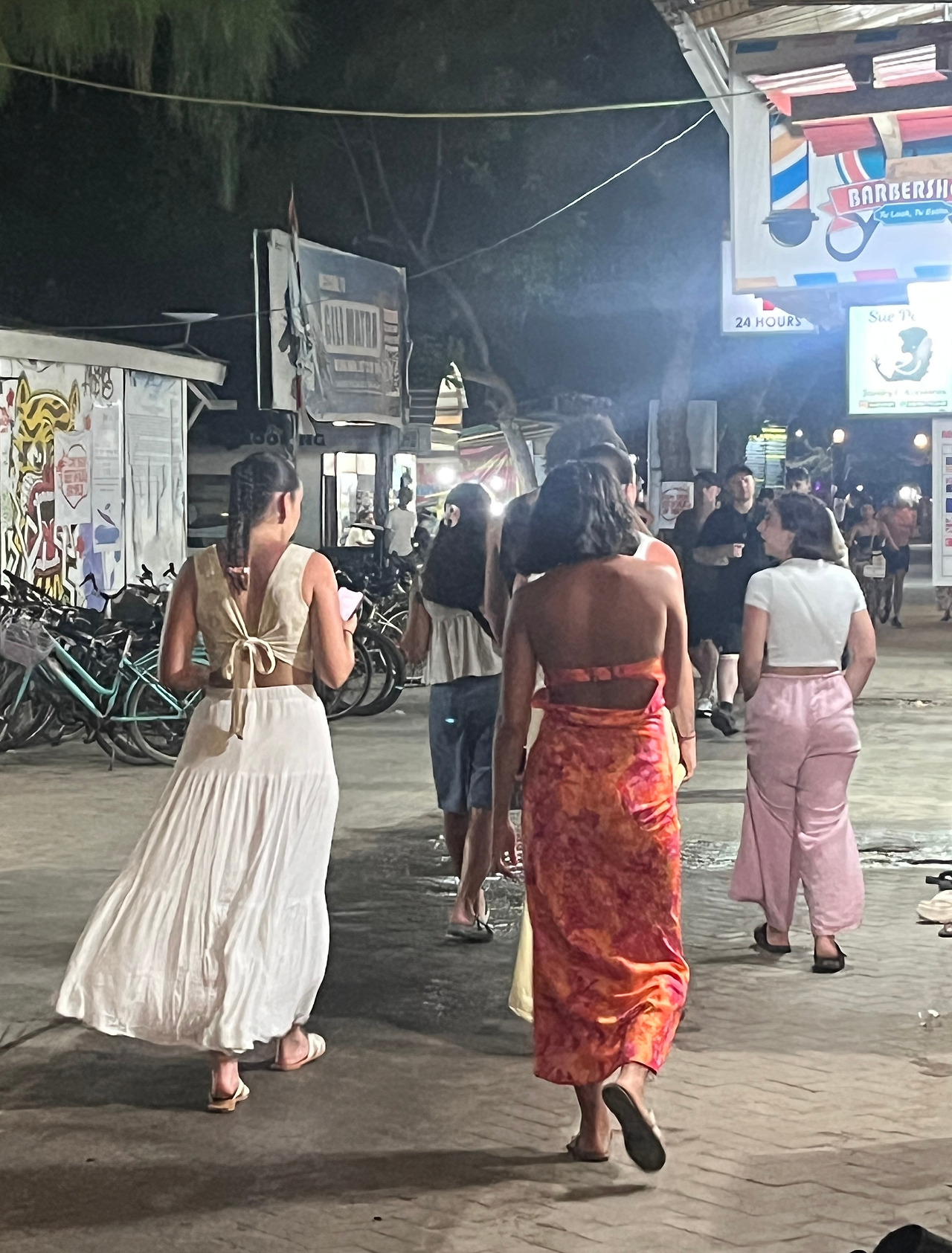 밤이 되면 거리는 또 다른 얼굴로 변모했다. 은은한 조명 아래 사람들은 저마다의 이야기를 나누며 밤을 즐겼고, 왁자지껄한 소리와 음악이 어우러져 흥겨운 분위기를 자아냈다. 비포장도로가 이어지는 한적한 길에서는 야자수와 푸른 식물들이 어우러져 길리만의 자연스러운 아름다움을 보여주었고, 해 질 녘 자전거를 타는 사람들의 실루엣은 그림 같은 풍경을 선사했다.