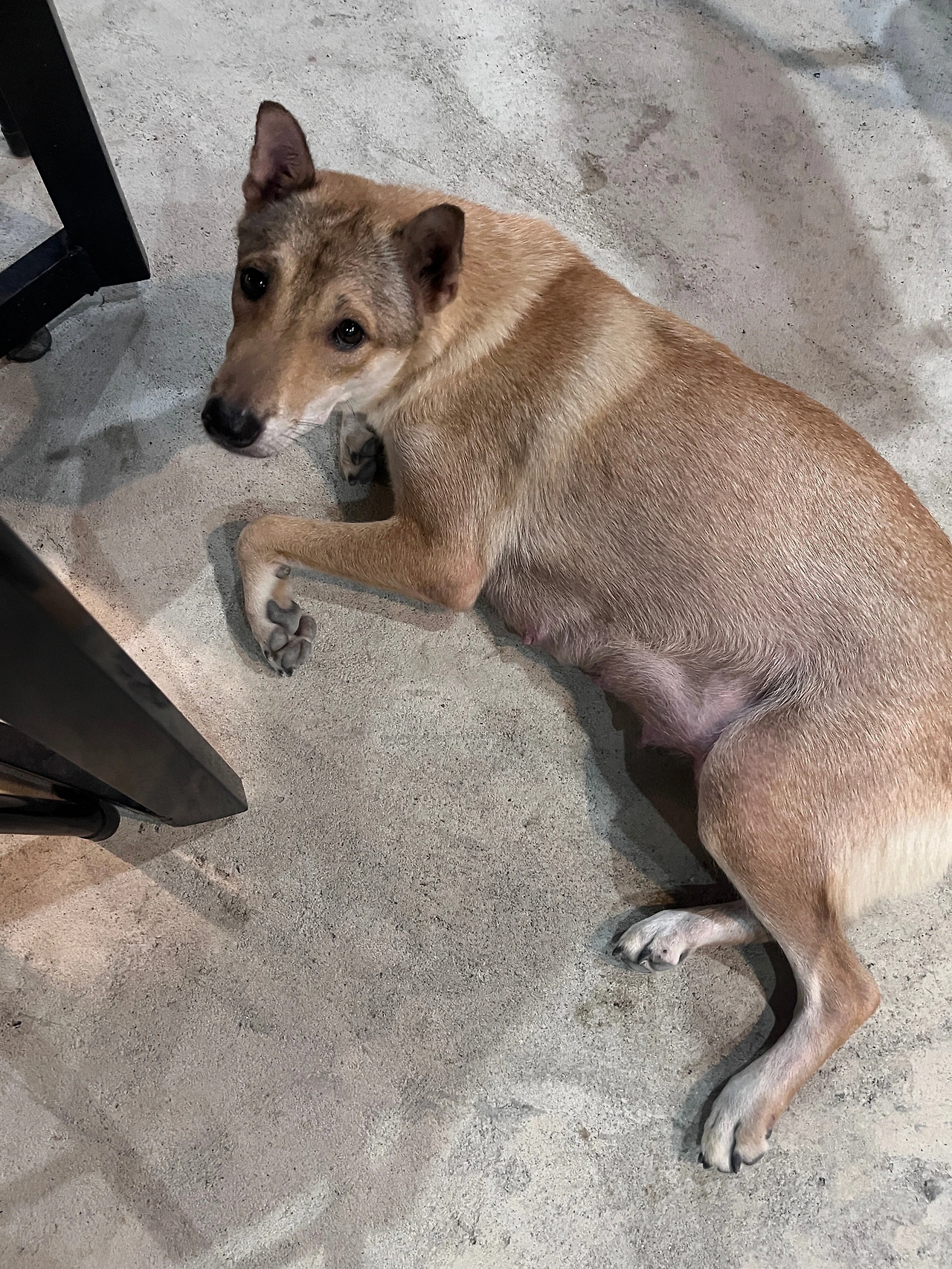가게에서 키우는 누렁이. 순한 눈빛이 이쁘다.