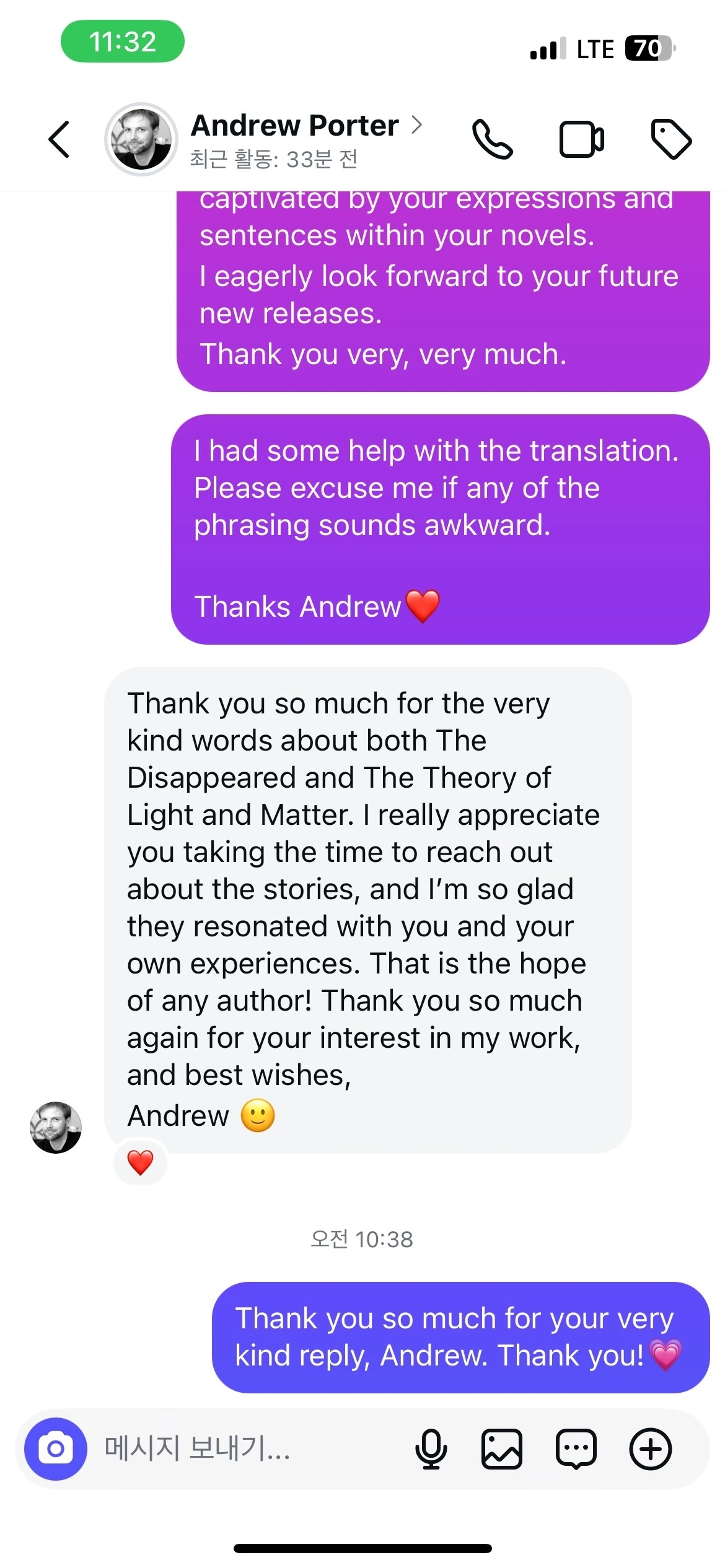 미국의 작가와 이렇게 직접 DM으로 대화를 주고받는 것을 전혀 상상하지 못했는데,