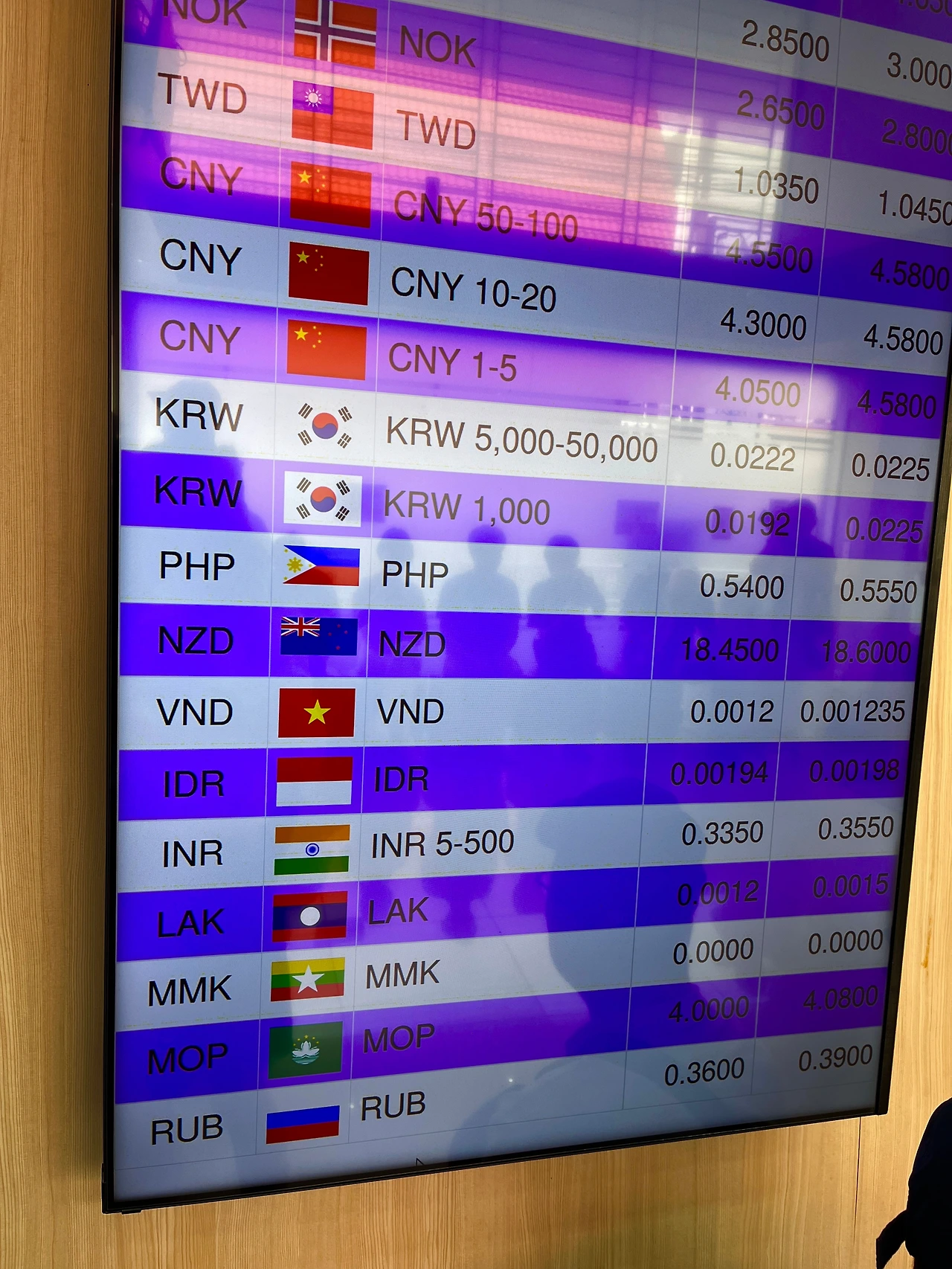 환전소에 도착하니, 사람들이 엄청 많다. 카드보다는 현금 사용이 많은 태국에서 환전을 하기 위해 여러 나라의 여행객들이 모여 있다. 건물 안으로 들어가 번호표를 뽑고 기다린다. 내 앞으로 35명이 더 있다. 원화, 달러, 유로, 엔화 할 것 없이 각 나라별 자국 화폐로 환전이 가능하다. 한참을 기다린 후 준비해 간 5만 원권으로 30만 원을 환전했다. 원화 30만 원 환전으로 받은 태국돈은 6660바트이다. 원화로 계산하니 294,170원이다. 인천공항에서 환전 때보다 수수료가 적다. 그래서 다들 여기로 모이는군. mr.pierre에 오기 전 원님만에 있는 작은 환전소의 환율은 원화일 경우 0.0202였다. 원님만의 환전소보다 200바트를 더 받은 것이다. 그래서 다들 여기를 찾는군.