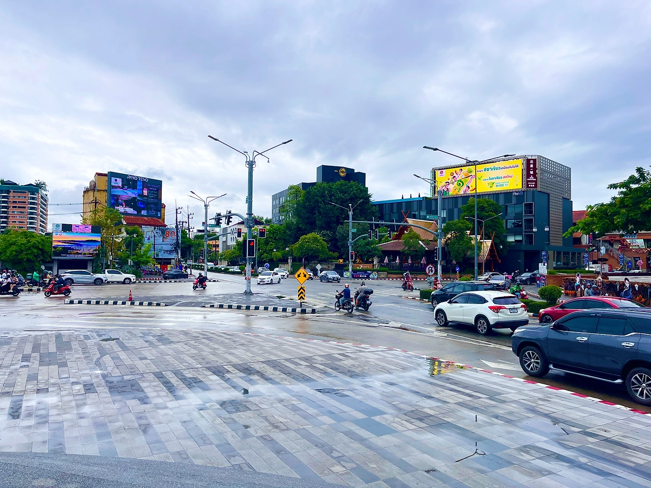 비가 잦아들어, 작은 칸켄 백팩에 접이식 우산을 끼워 넣고, 책과 아이패드, 핸드폰, 돈을 챙기고 밖으로 나간다. 치앙마이 거리를 느껴보자! 싼티탐 숙소에서 마야몰로 가는 길은 걷기에 좋았다. 첫째 길은 넓었고, 사람은 많지 않았다. 발리 우붓의 길보다는 조금 더 정돈된 모습이다. 오토바이의 수도 발리나 호이안 보다 적어서 걸어 다니는 보행자들의 이동이 편하다. 여행객의 수가 줄어들어든 것인지, 아직 아침이라 이동이 없는 건지 모르겠지만, 마야몰로 향하는 길은 한산하다. 토요일 아침의 거리는 현지인도 잘 보이지 않는다.