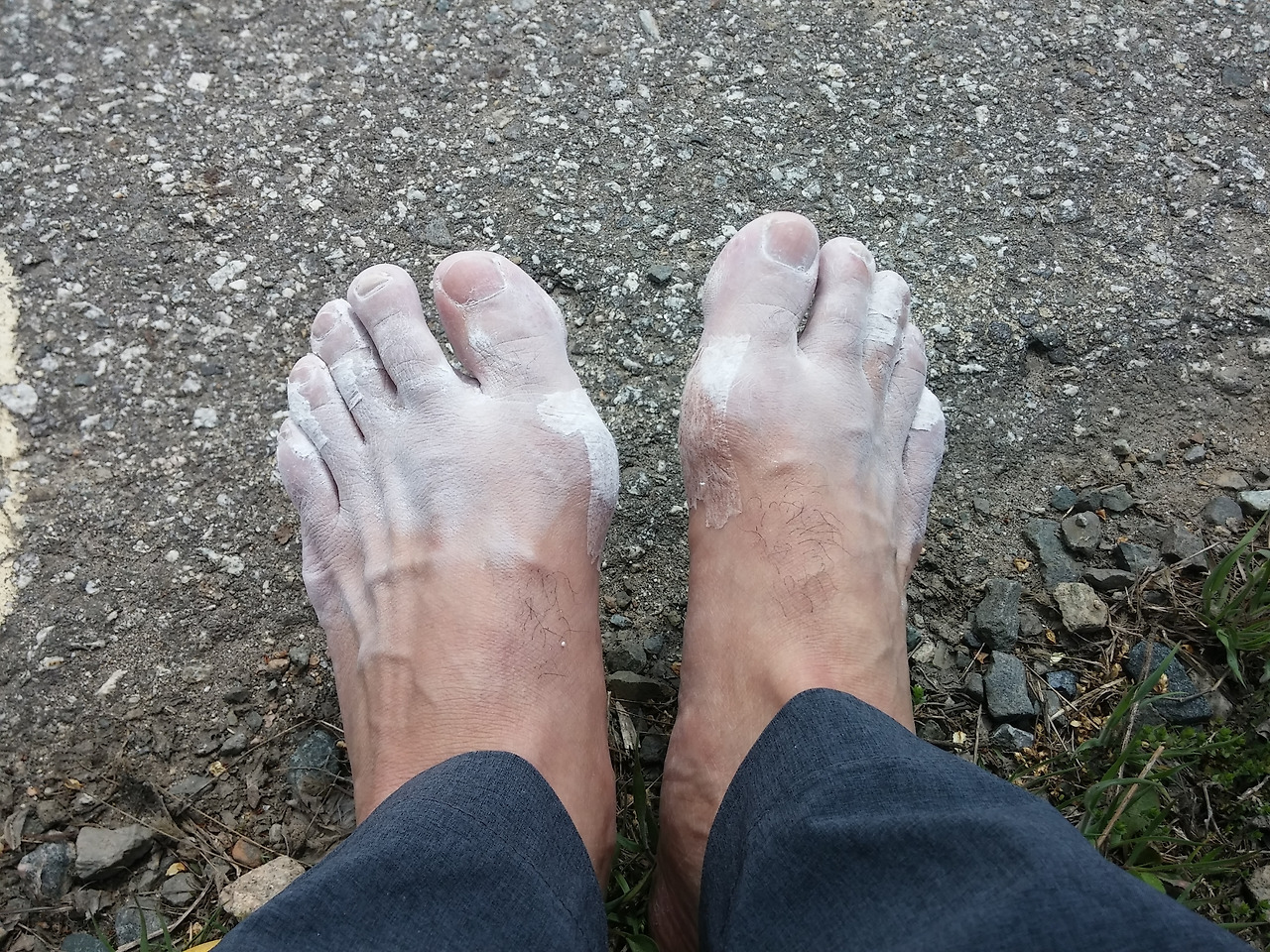 머리가 지체를 혹사시키니 지체가 반란을 일으켰다. 이번 여행에서 하루 도보거리를 25km 넘지 않으려 했다. 작년에 평균 30km 이상 걸었다가 다리에 문제가 생겨 도보여행을 중단하지 않았나. 올해에는 강원도 산간지대를 넘어야 하기에 무리하지 않기로 했지만, 며칠 후 비가 온다고 하여 미리 30km로 늘렸다. 새끼발가락에 물집이 크게 잡혔다. 매일 숙소를 나서기 전과 휴식을 취할 때마다 발에 베이비파우더를 발랐지만 다가올 것이 왔다. 그러나 며칠만 고생하면 된다. 물집 부위는 딱딱하게 굳는다.