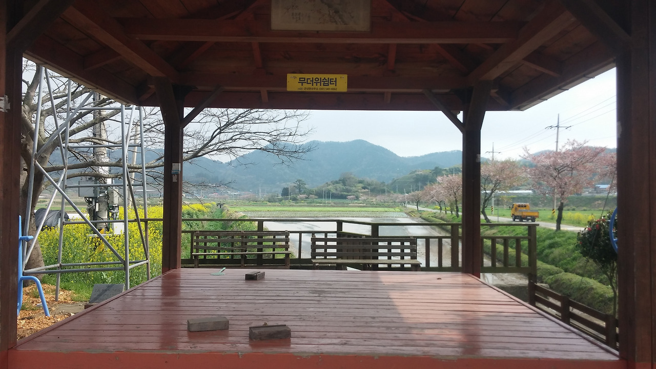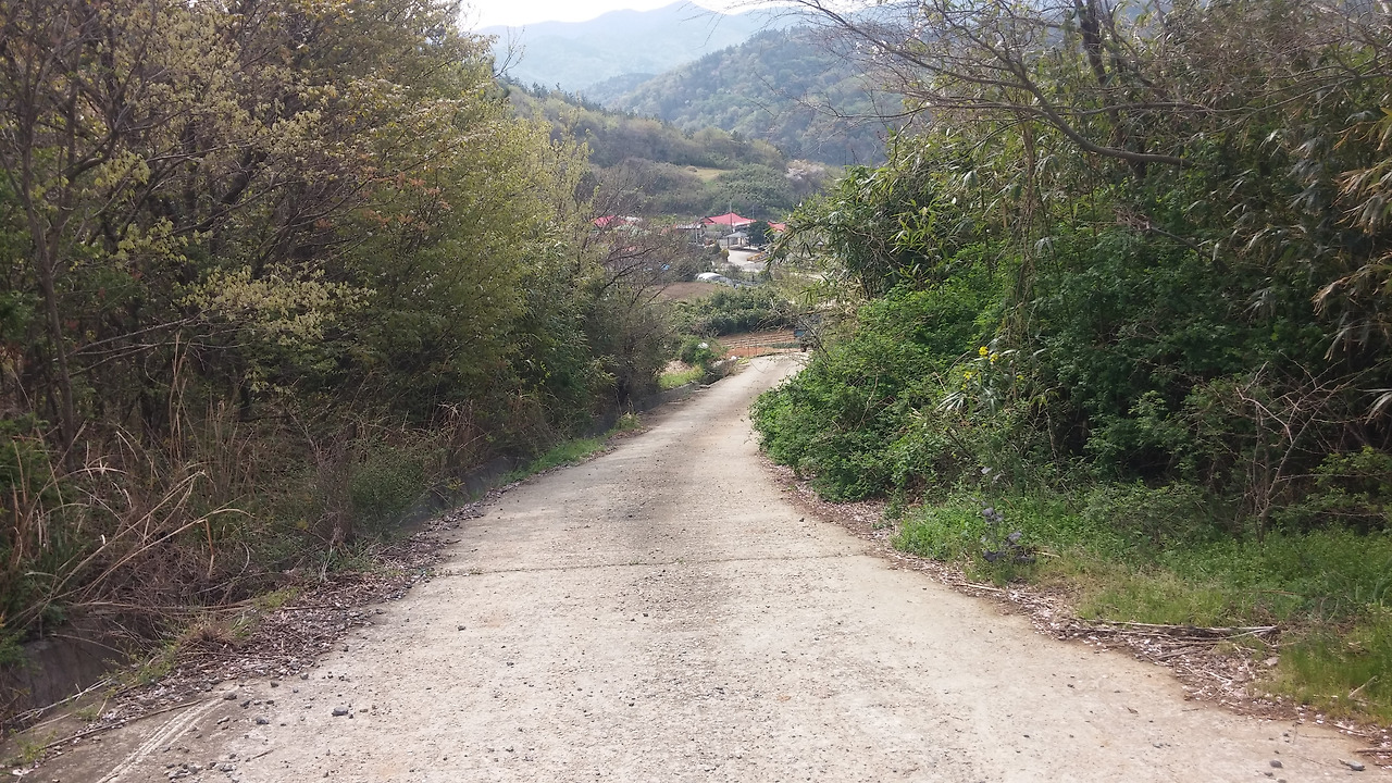 스마트폰 지도로 다른 길을 검색하였다. 군내면사무소 옆으로 난 길을 찾았다. 명색이 면사무소가 자리한 곳인데, 식당 하나 없고 무척 한적한 시골이다. 그 옆을 따라 마을 길로 접어들어 100여 M쯤 가다 보니 경사로가 나오고 이어 좁은 임도가 나타났다. 승용차는 어림없고, 사륜구동 소형트럭만 다닐 수 있는 길이다.