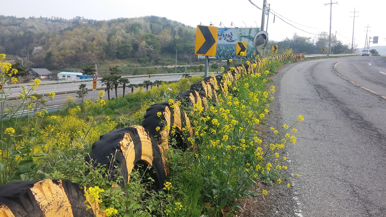 읍내에서 진도대교로 이어지는 도로는 4차선 국도 18번이다. 과속 차량이 많아서인지 중앙분리대와 차단벽까지 설치하였고, 약 700M에 달하는 자동차 터널도 있다. 나는 이 길을 벗어나 구도로로 접어들었다. 역시 지나는 차량이 거의 없고 한적하다. 길고 굽이진 오르막길을 오르다 보니 발아래 4차선 도로에서 차량은 굉음을 내며 질주한다.
