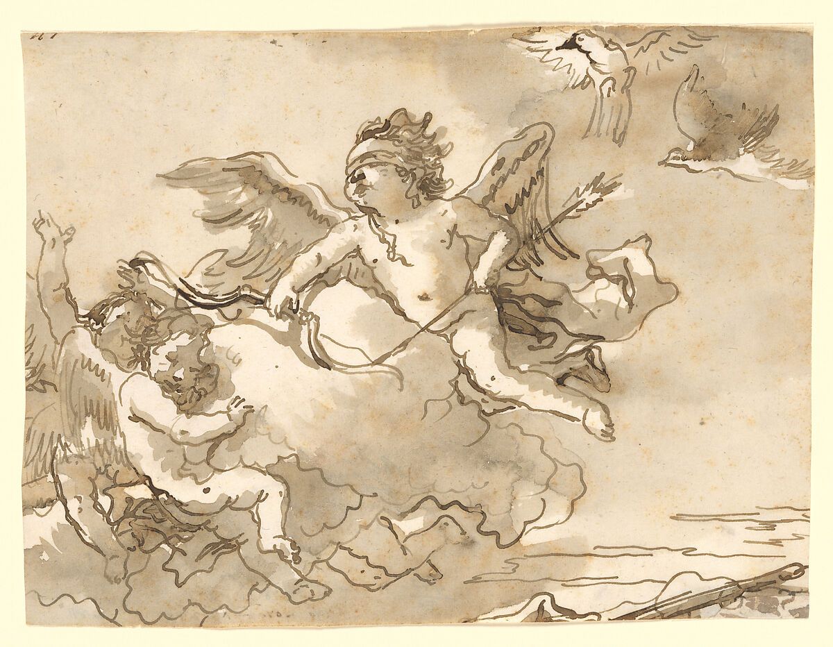 지오반니 티에폴로의 1770-90경 스케치로 눈을 가린 큐피드는 눈먼 사랑의 운명과 우연을 의미한다.