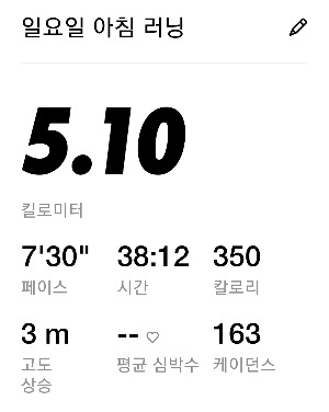 결국 5.1킬로미터를 38분 12초에 끊었다.
