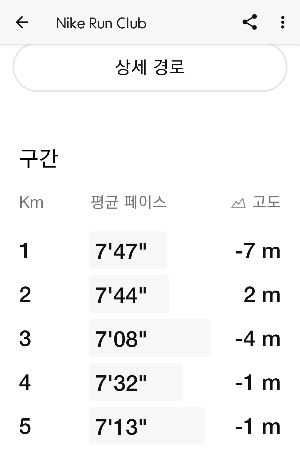 처음 1킬로 구간 기록이 7분 47초, 8분 안에 달렸다.
