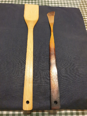 위 사진 속 두 개의 주걱은 8년 전인 2018년 겨울, 우리 둘(초능력자인 아내와 나)의 식당 '오늘도낙지' 개업 준비를 하면서 산 것이다.