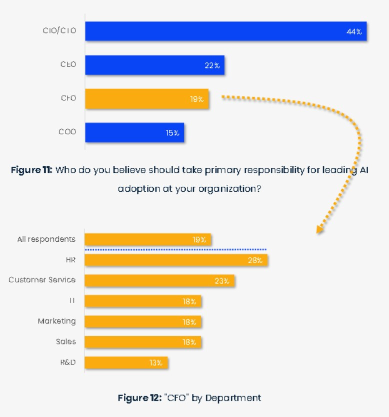 AI 리더십 공백: CFO가 AI 도입을 주도할 것이라 기대한 비율은 19%, CIO/CTO는 44%